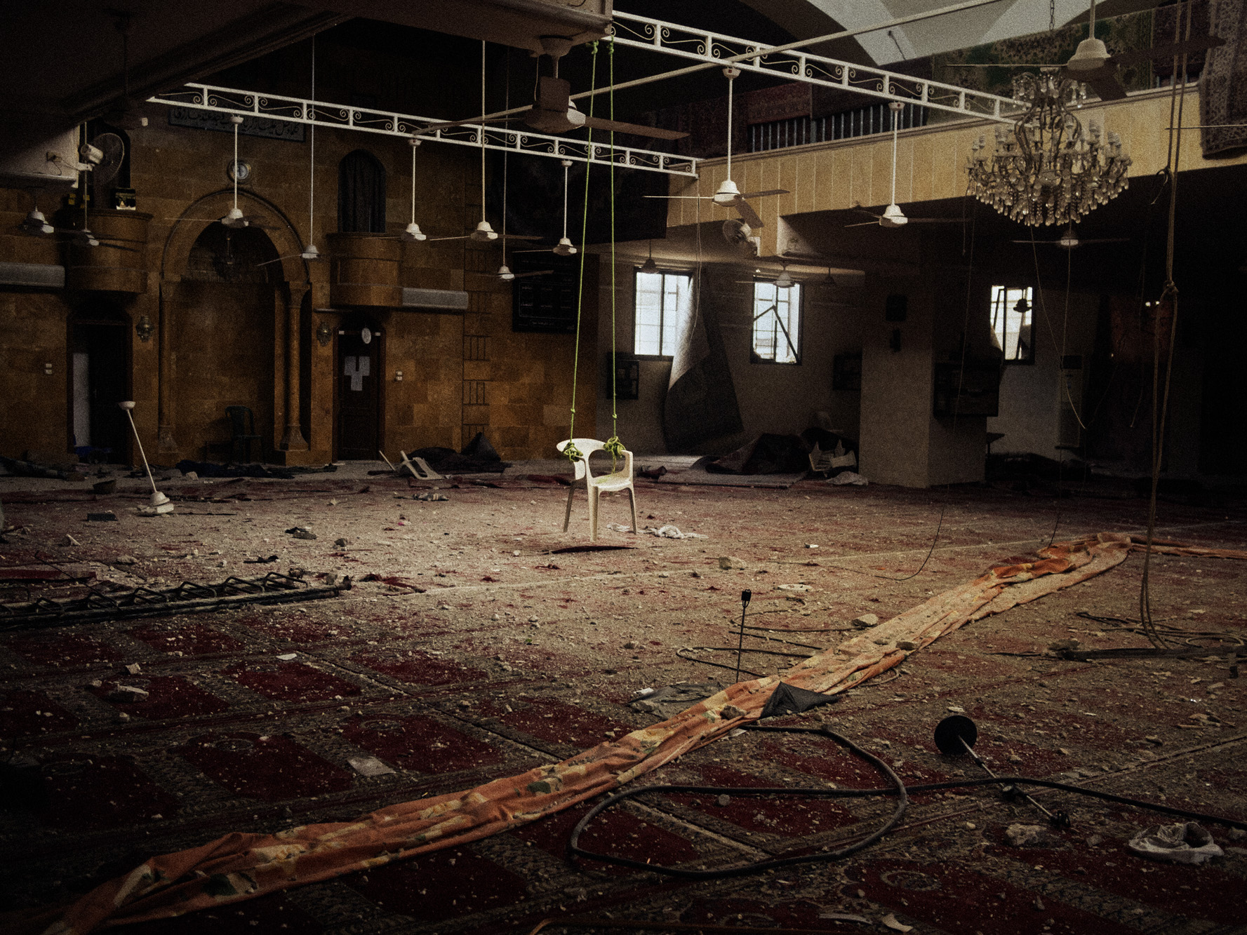 ¿Qué es eso? ¿Es un columpio o un objeto diseñado para la tortura? Esta imagen va al corazón de mi libro, a su ambigüedad absoluta. Yo iba con un grupo de rebeldes que tomaron esta mezquita que estaba ocupada por el Ejército de Asad y que encontramos así. La escena deja muchas preguntas. Puede ser algo tan inocente como un columpio para los soldados aburridos. O un objeto de tortura. No tengo una respuesta, pero la imagen sí que tiene una connotación siniestra. No puede ser nada bueno. O quizá sí lo es y no entendemos nada de esta parte del mundo.