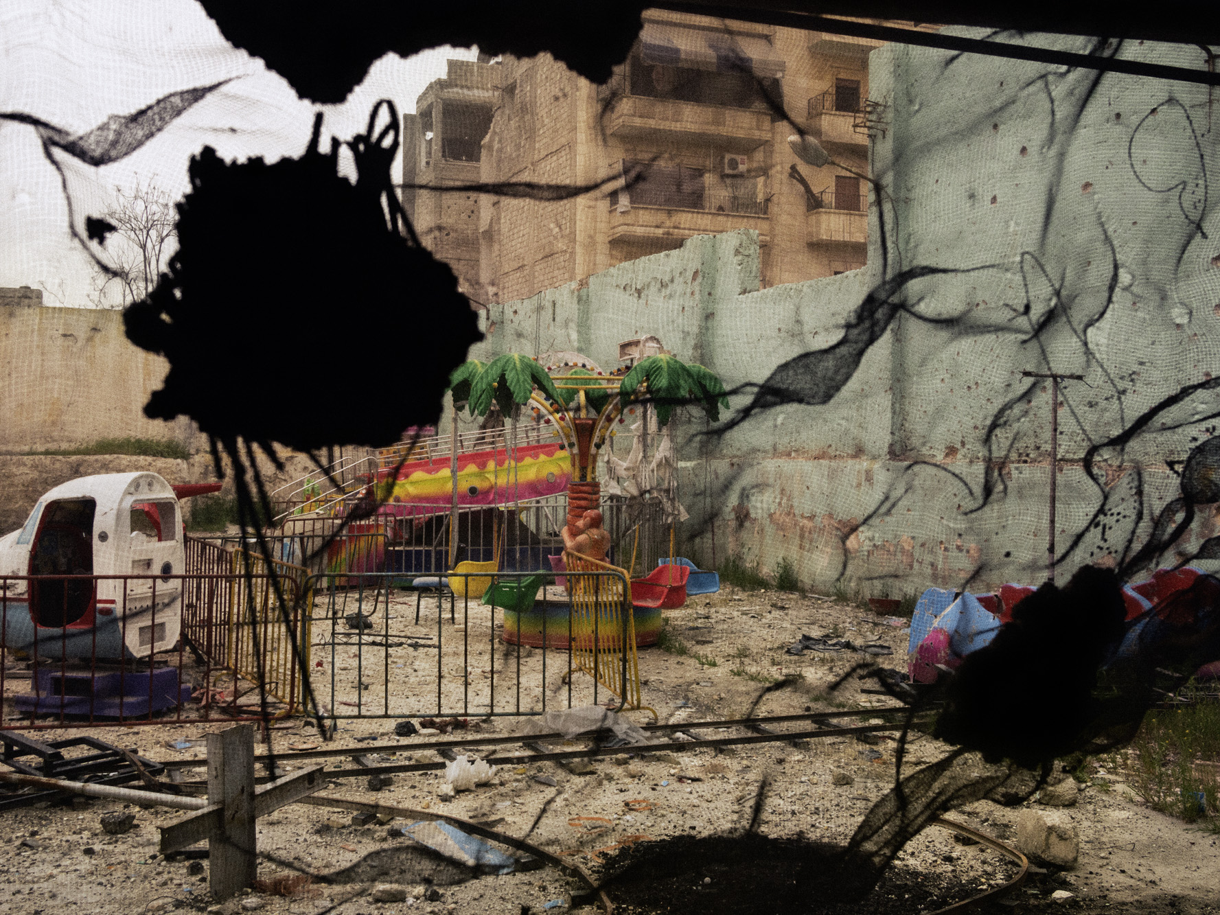 La intención de esta fotografía es jugar con la representación de este parque en nuestra mente. Seguro que aquí ha habido muchos momentos felices, muchos juegos, y ahora ha quedado así a causa del conflicto. Intento invitar a la persona que vea la foto a imaginar cómo era antes el parque.