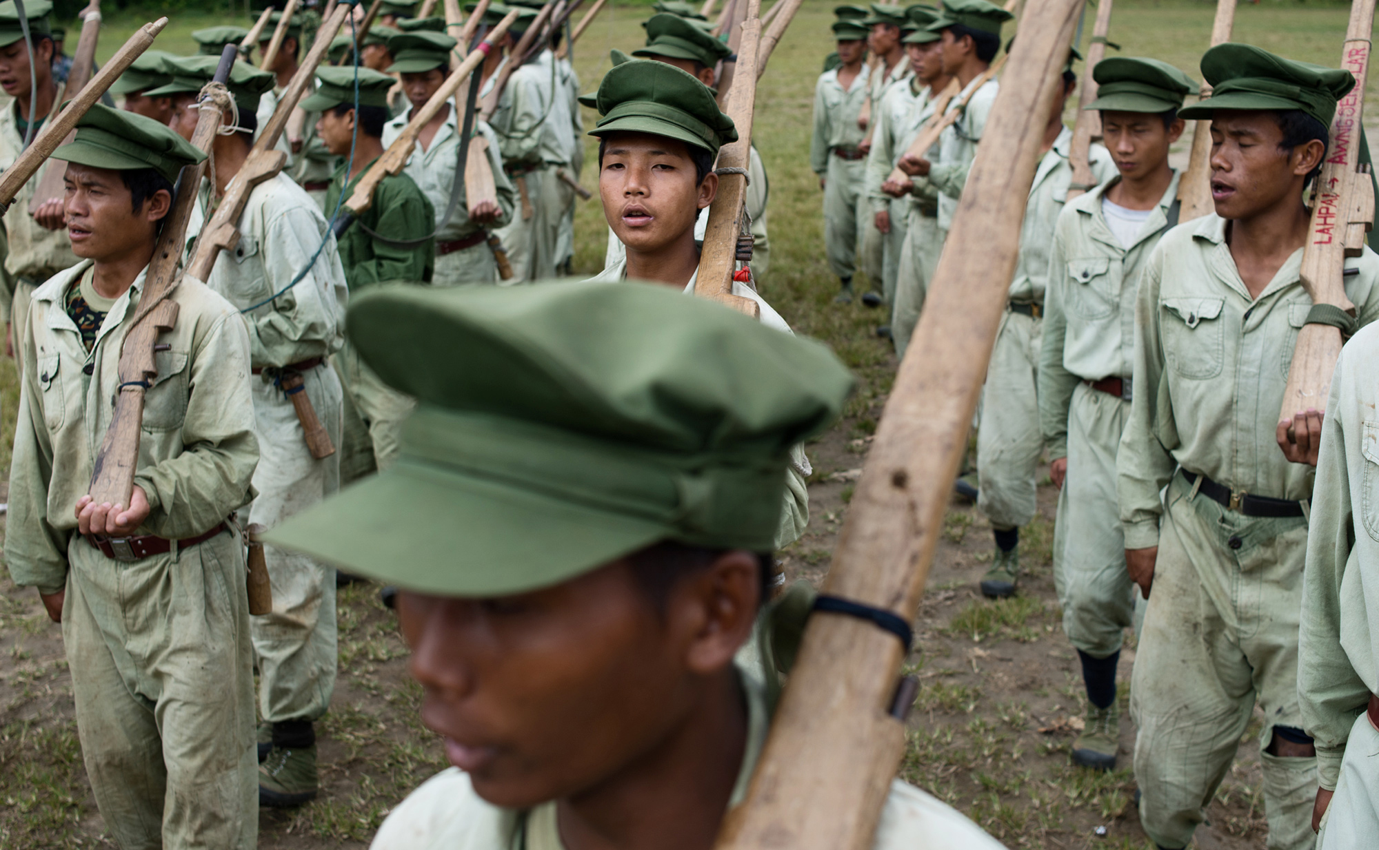 Mientras, cientos de nuevos reclutas toman las armas en los campos de entrenamiento del KIA. La mayoría son adolescentes y empuñan solo fusiles de madera a los que ellos mismos dan forma con machetes, pero en las afueras de Laiza varios talleres fabrican una versión casera del kaláshnikov. El jade, el oro y el opio financian las operaciones de diferentes grupos armados. Aquí y allá, minas rudimentarias demuestran que el KIA también obtiene fondos por esta vía, aunque los guerrilleros ofrecen acceso muy restringido a estas instalaciones.