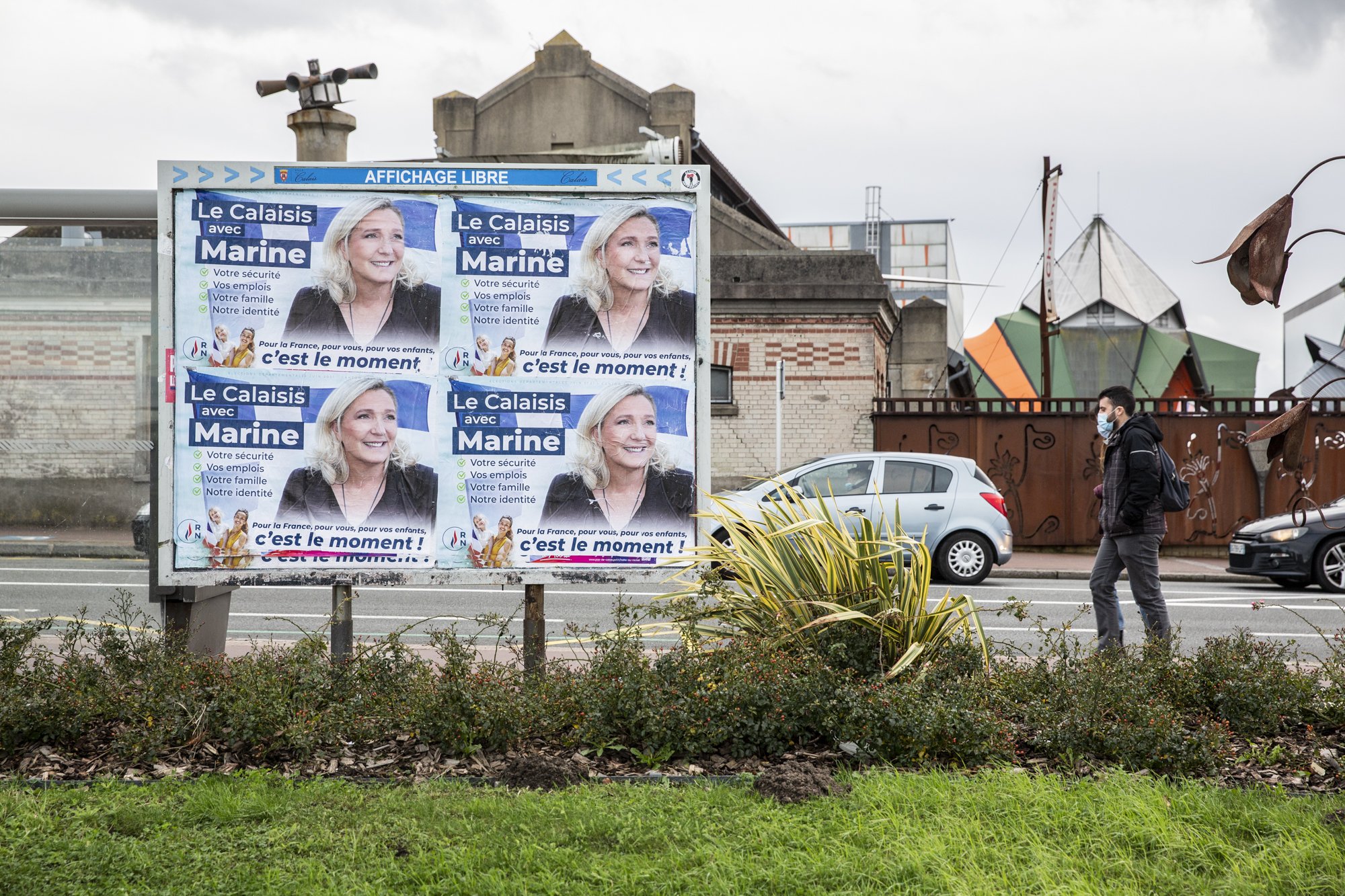 Ahora, al pasear por los barrios cercanos al centro de la ciudad de Calais, de calles residenciales y casas bajas, llama la atención que todos los carteles electorales muestran a una Le Pen radiante bajo el eslogan de “Libertad”. La actual alcaldesa pertenece, sin embargo, a Los Republicanos, y renovó su mandato hace apenas dos años. Así que estos pósteres no son prueba de un apoyo masivo a la candidata de extrema derecha, sino de la insistencia de sus partidarios por convertir el norte de Francia en el símbolo de las ideas supremacistas. “Cada pocos días sus militantes vuelven a pegarlos. Tratan de ocupar todo el espacio público en su obsesión por convertir esta ciudad en su fortaleza”, critica Louise Druelle, concejala independiente del Ayuntamiento de Calais.