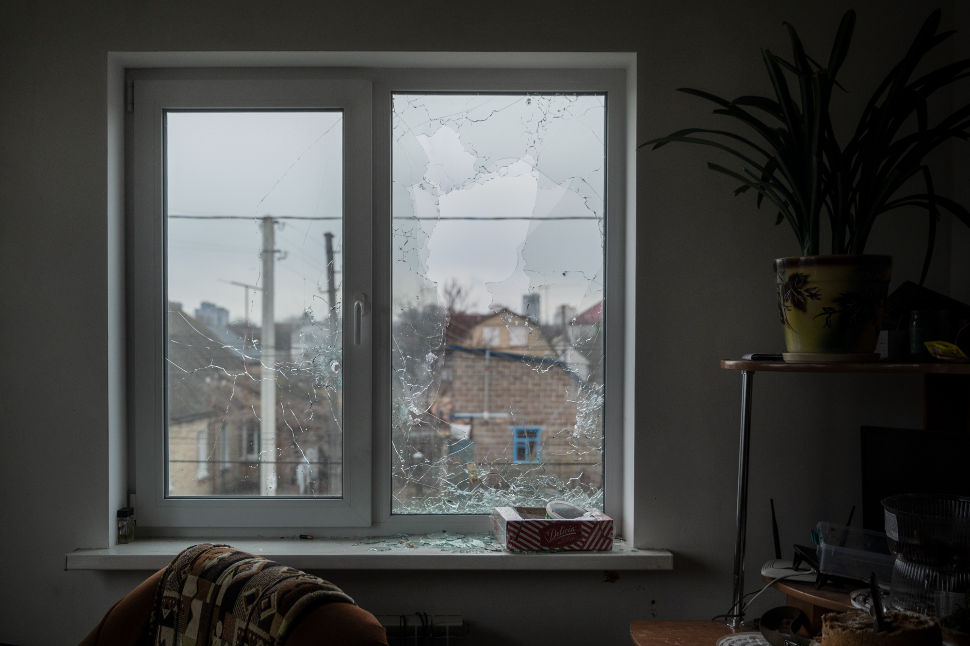 Las ventanas de su casa están rotas por las explosiones: Lidia cuenta cómo los proyectiles pasaban de un lado a otro, cómo le daba miedo el ruido de los aviones y cómo un obús cayó muy cerca pero no explotó. Pese al frío que hace en el pequeño piso, ella se resiste a marcharse de este lugar en el que vive desde 1972. Recuerda cómo durante la ocupación no podía alejarse más de dos o tres metros de la entrada del edificio.