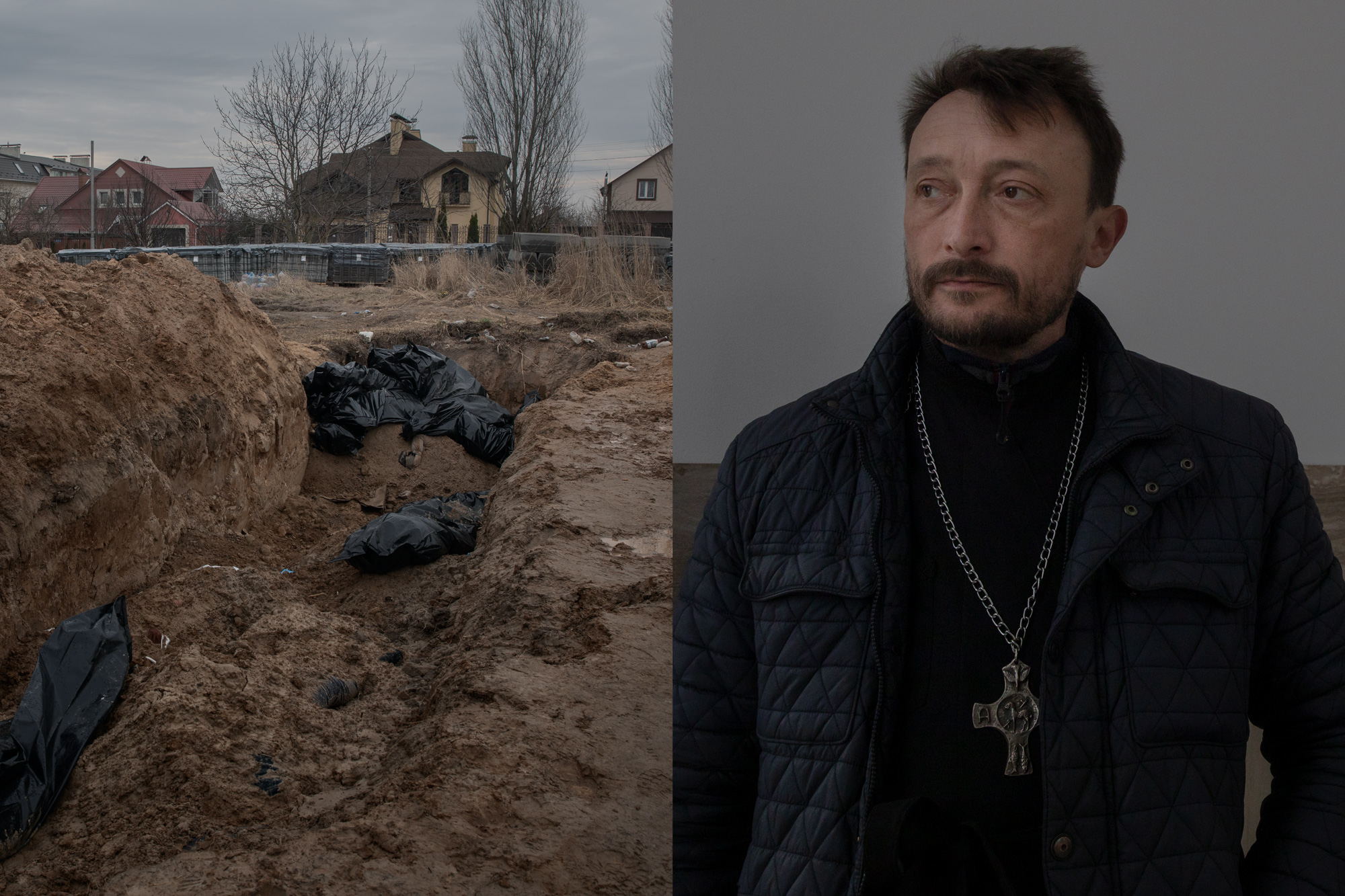 El sacerdote ha perdido la cuenta de cuántos se enterraron en la fosa común, pero sí sabe que el primer día que depositaron cuerpos allí —67 cadáveres— fue el 10 de marzo. Recuerda la fecha con claridad porque aquel día los soldados rusos autorizaron un corredor para abandonar la ciudad. Dice que se concentraron unas 2.000 personas cerca del Ayuntamiento para esperar a los autobuses que los sacarían de Bucha. Había autoridades y personal de la Cruz Roja.