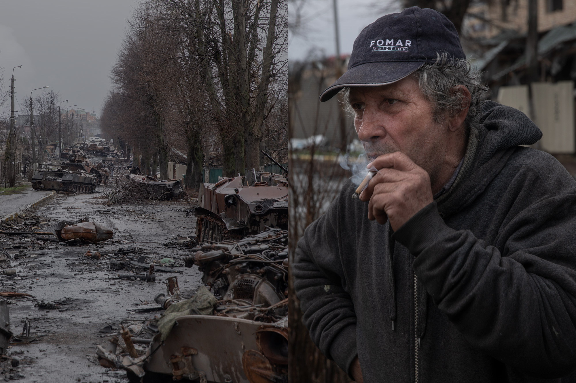No tocaron los cadáveres de las calles por miedo a que tuvieran bombas trampa. Había un poco de cobertura, e Igor consiguió llamar por teléfono a su mujer, refugiada en Polonia. Ella le dijo que en las noticias decían que Bucha aún estaba ocupada, pero Igor se lo negó.