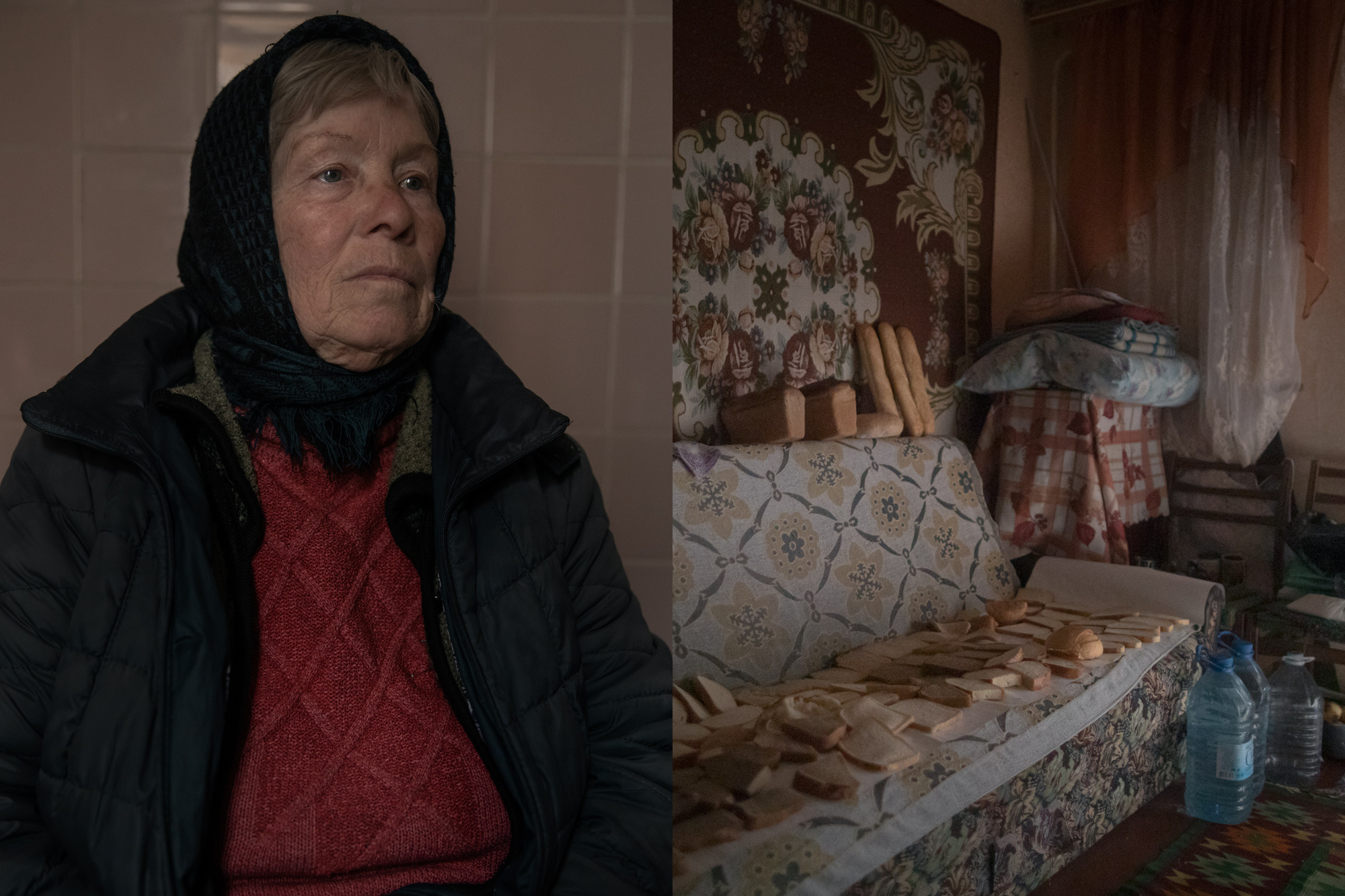 Nos lo cuenta Lora Khvorostinova, periodista de 50 años. Pasó el mes de marzo en ese sótano con su marido, porque su casa estaba en plena línea de frente y las explosiones y ataques eran continuos. Lora explica que los soldados solo permitían salir de ese lugar a las mujeres para que fueran a buscar comida y cocinaran. Recuerda cómo en una ocasión no les permitieron salir. Aquel día, su única comida fue un huevo.