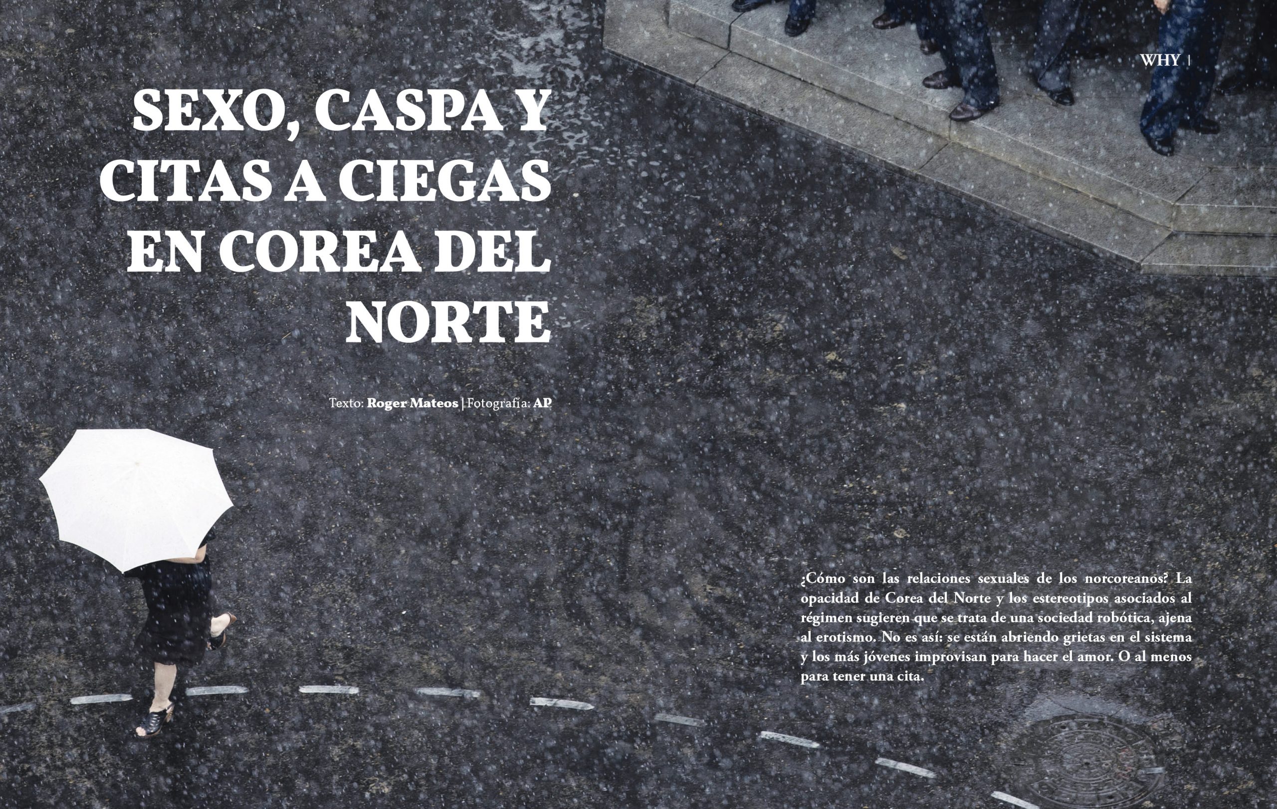 El WHY, la crónica de larga distancia de este capítulo, es uno de los temas que más han llamado la atención a los lectores. La opacidad de Corea del Norte y los estereotipos asociados al régimen sugieren que se trata de una sociedad robótica, ajena al erotismo. ¿Es así? En Sexo, caspa y citas a ciegas en Corea del Norte, el periodista Roger Mateos nos cuenta cómo se improvisa en el país asiático para hacer el amor.