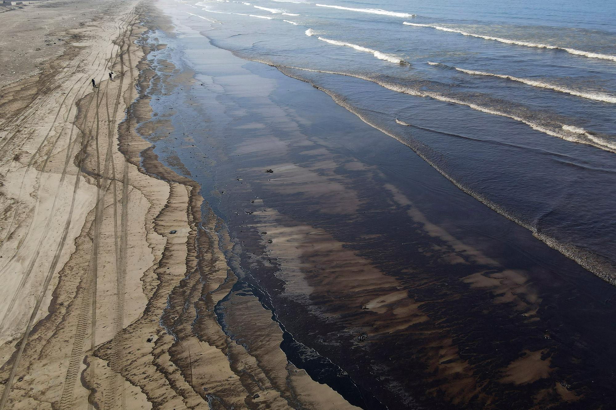 Nuestra fotografía de la semana, de Martín Mejía, muestra las consecuencias del derrame de petróleo ocurrido en Perú a raíz de la erupción volcánica en Tonga. La violencia del oleaje provocado por el fenómeno natural afectó de lleno a un buque que estaba en plena descarga del crudo. El vertido equivalente a 6.000 barriles de petróleo, según datos del ministro de Ambiente peruano, se produjo el sábado y ha afectado a dos áreas naturales protegidas.