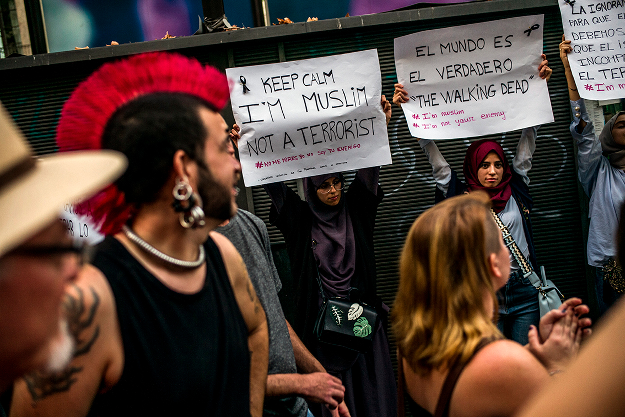 Esta foto está tomada durante la manifestación de la comunidad musulmana el domingo, tres días después del atentado. Para el lunes se había convocado una manifestación oficial, pero esta fue espontánea, empujada por la rabia. Había mucha emoción. Reivindicaban que están en contra del terrorismo, que los musulmanes también son víctimas.