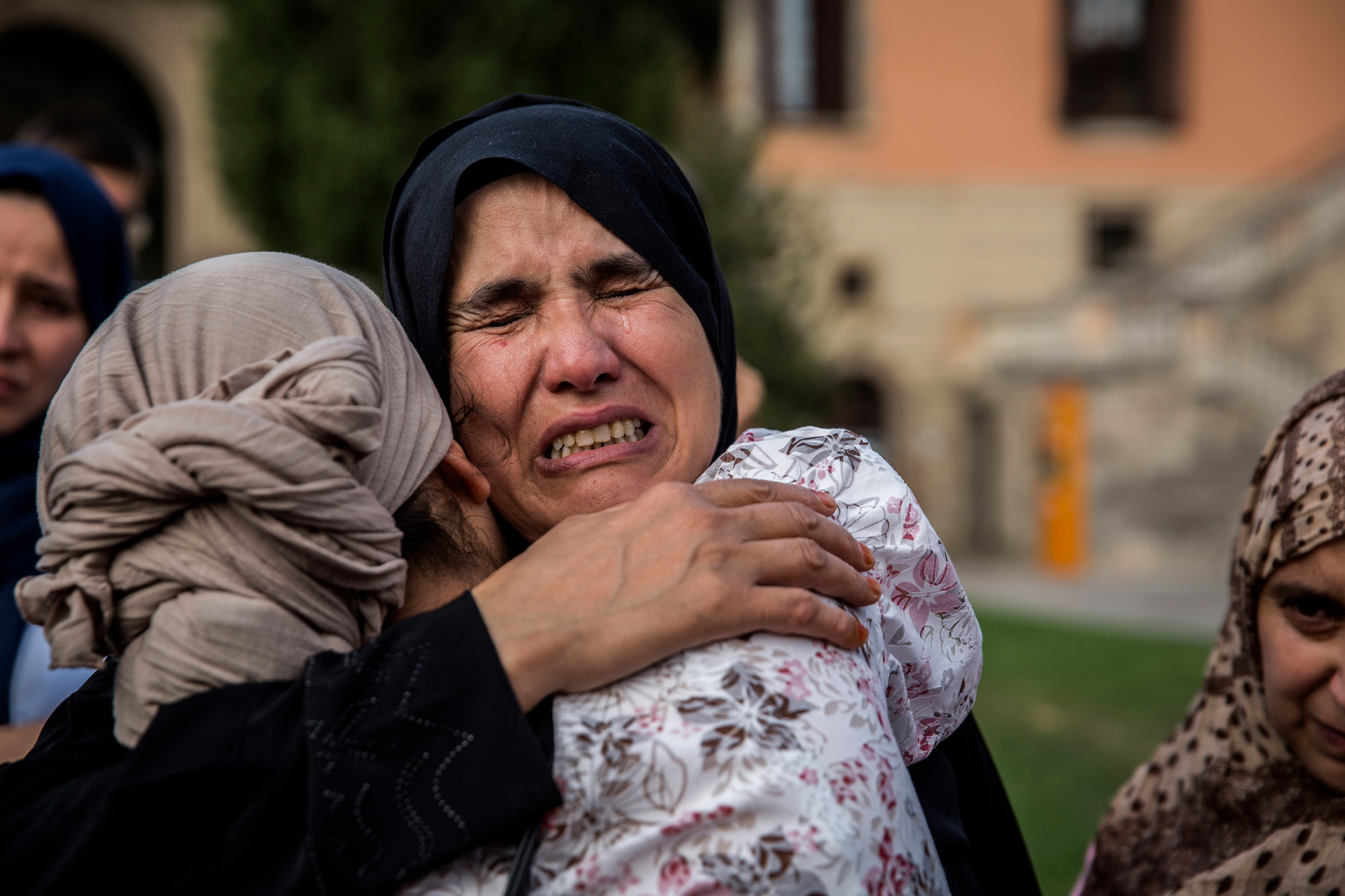 Cuando llegué me encontré a un grupo de mujeres con hiyab. Entre ellas estaban las madres de los chicos muertos en Cambrils y del entonces huido Younes. Un escalofrío me recorrió el cuerpo. Sus hijos habían asesinado a quince personas y luego habían sido abatidos por la policía. No podía imaginar su dolor, pero intenté fotografiarlo cuando rompieron a llorar. La de esta foto, una de las más afectadas, es Halima, madre de Mohamed Hychami.
