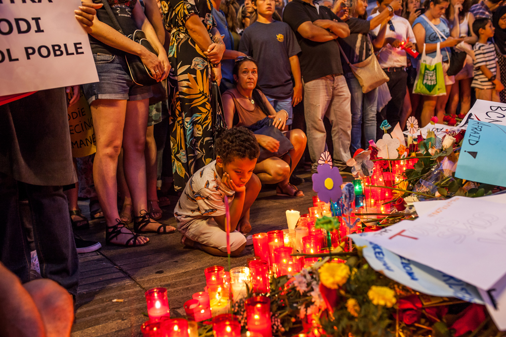 Muchos fotógrafos habituados a trabajar en zonas de conflicto cubrieron, esta vez en casa, el horror que empezó en ese medio kilómetro que separa la Plaza de Cataluña del lugar donde se detuvo el vehículo. El dolor de los familiares, el temor, la valentía, la angustia, las manifestaciones, las muestras de solidaridad… Como en otros atentados ocurridos en Europa, las escenas que se sucedieron aquel día y los siguientes quedaron documentadas en imágenes que dieron la vuelta al mundo.