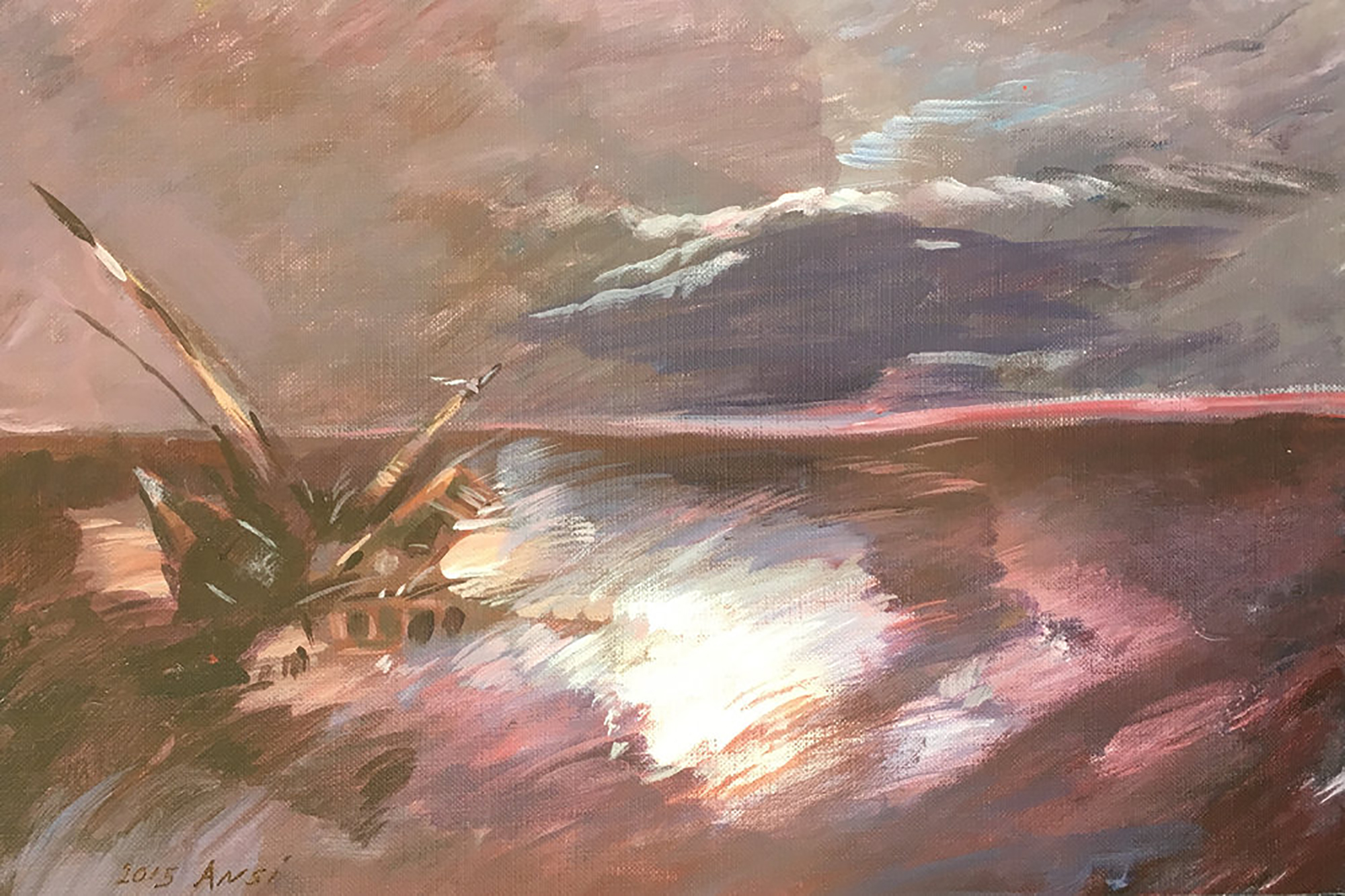 El mar también está muy presente en los cuadros de Mohamed Al Ansi, probablemente el artista más prolífico de Guantánamo. Al Ansi fue otro de los treinta hombres detenidos en 2001 en la frontera entre Afganistán y Pakistán por pertenecer, según un perfil del Departamento de Defensa norteamericano, al servicio de seguridad de Bin Laden. A diferencia de Al Alwi, que sigue preso, Al Ansi tuvo la suerte de salir de Guantánamo ocho días antes de la toma de posesión de Trump, en el último avión. Ahora reside en Omán, país vecino de su Yemen natal.