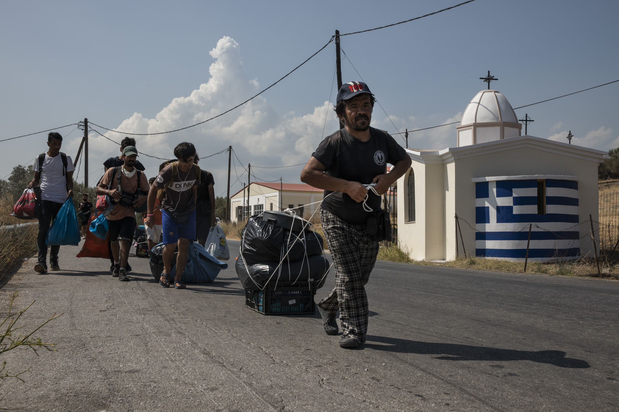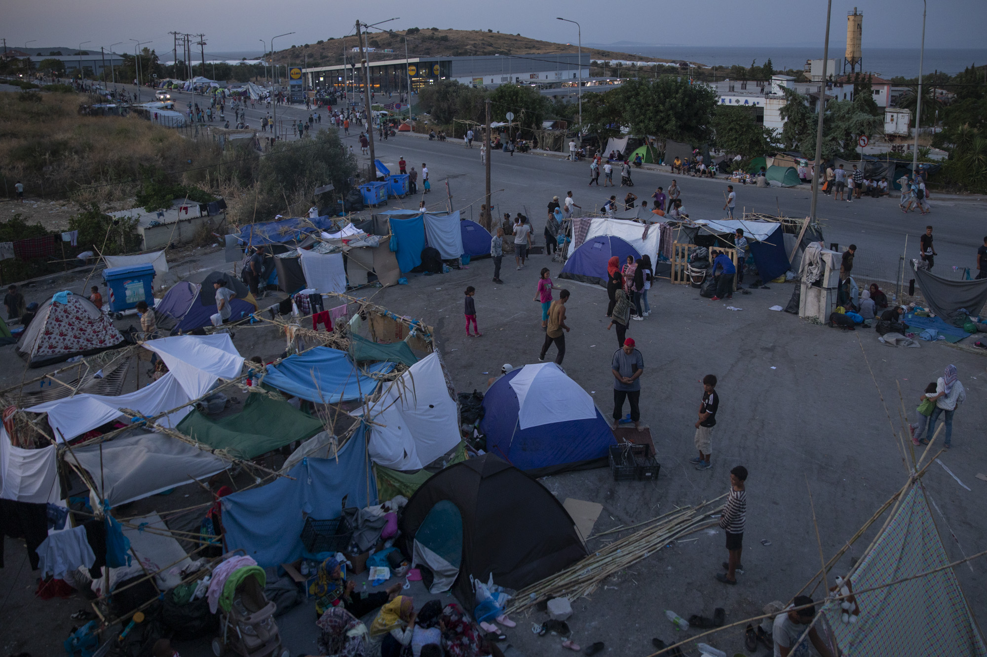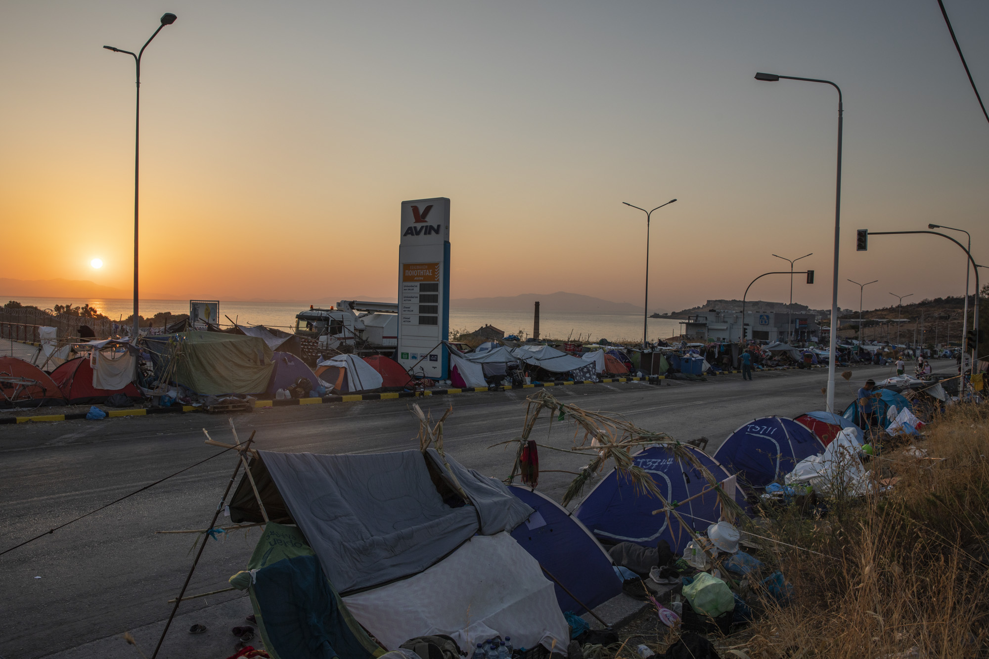 Tras el fuego de Moria, la noche del 8 al 9 de septiembre, la mayoría salió con lo que pudo agarrar y se refugió unos kilómetros en dirección al mar, en un tramo de carretera litoral: los arcenes, gasolineras y supermercados se convirtieron en un nuevo campo provisional, una ciudad refugiada en la que los recién llegados enseguida instalaron sus rutinas, sus reivindicaciones, su dolor —también sus juegos. Trece mil almas hasta entonces encarceladas —Moria estaba en cuarentena desde hacía meses debido a la pandemia— son mucha vida: habría sido imprudente que la Policía cargara contra la multitud, que intentara despejar la carretera y llevara a los refugiados, no se sabe cómo, a otro lugar. La estrategia fue otra.