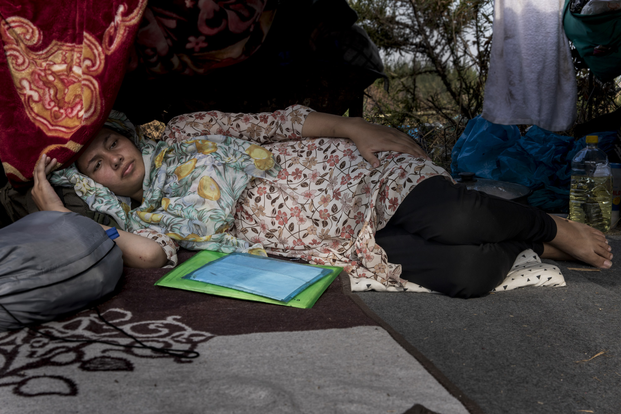 —Hace más de una semana que tengo problemas, fui al doctor y me dijo que estuviera en un lugar seguro, que no me moviera mucho. Aquí no estoy bien, hace mucho calor, tengo muchos problemas, sangro, debería estar en un buen lugar —dice Zahra—. Tengo muchas esperanzas puestas en mi bebé. Si le pasara algo, me quedaría muy triste.