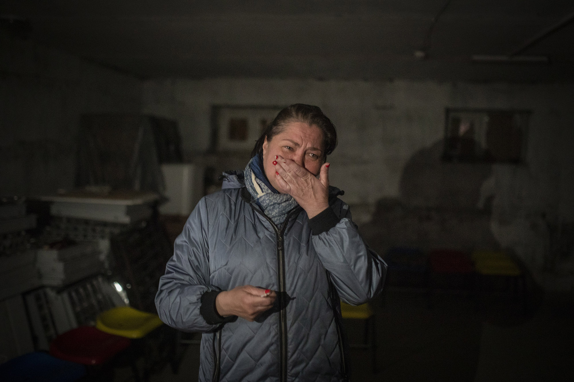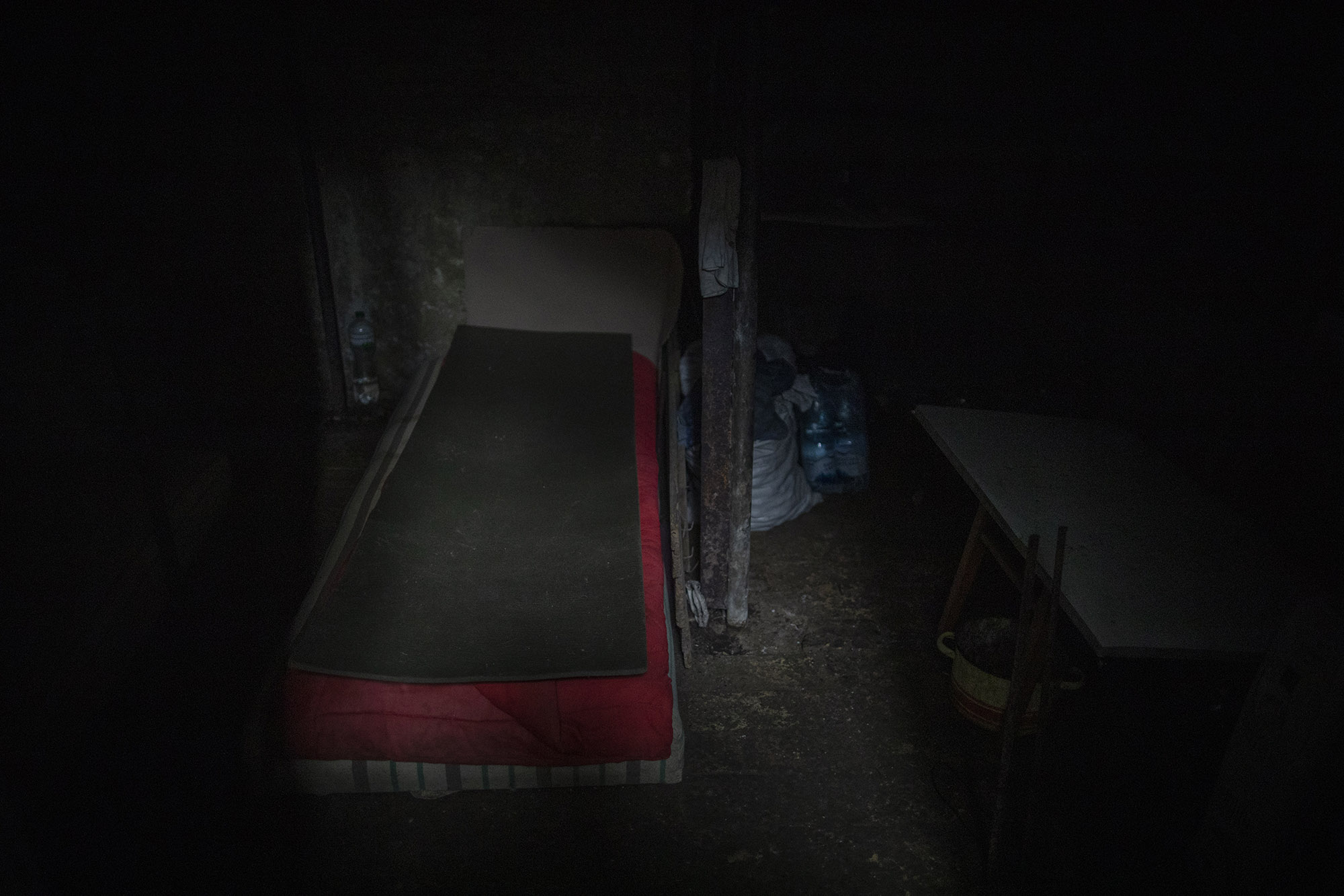 La mayoría de personas que han vivido la ocupación rusa en Bucha lo han hecho en sótanos convertidos en refugios. Entre ellos está el de la imagen, ubicado en el edificio de un jardín de infancia. En él llegó a haber hasta 500 personas refugiadas.