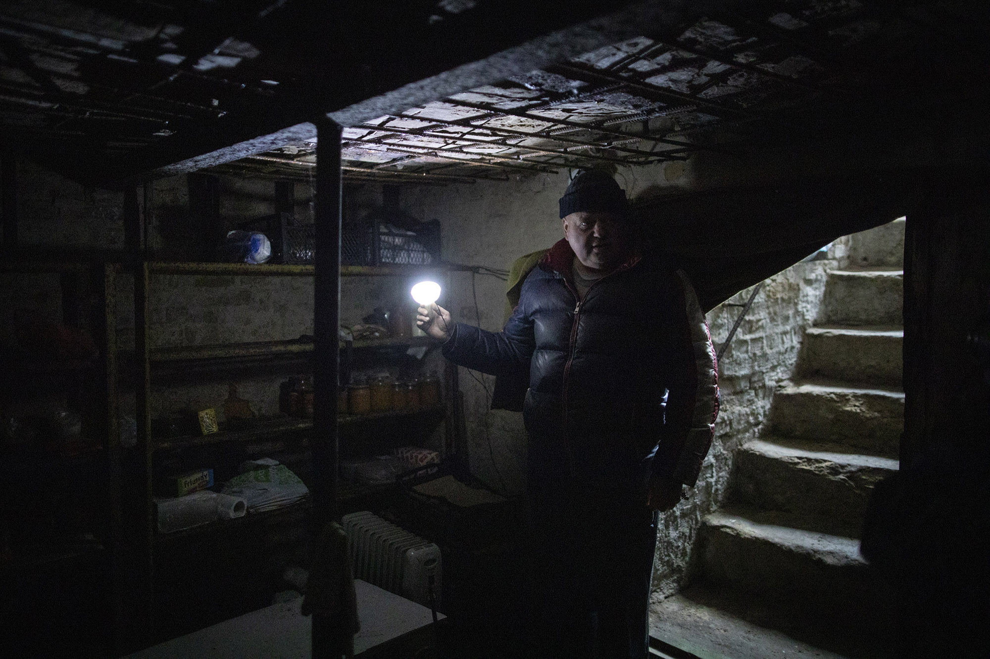 Este es el sótano en el que pasó las más de 30 noches que transcurrieron desde el inicio de la ocupación. Es un espacio subterráneo muy pequeño preparado para conservar alimentos, y donde la temperatura no supera los 5 grados. Había pasado todo ese tiempo con su madre, Valentyna, de 69 años.