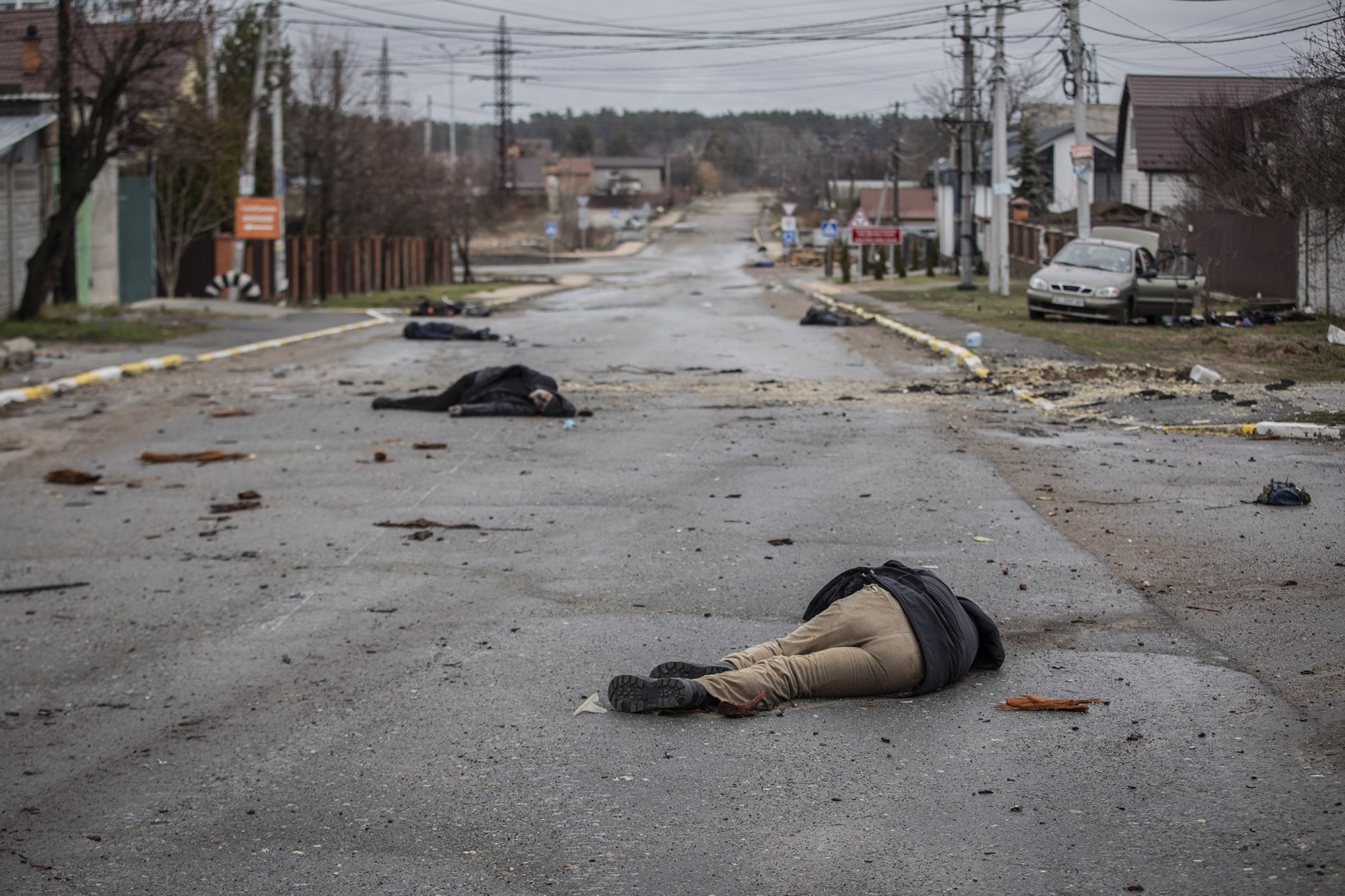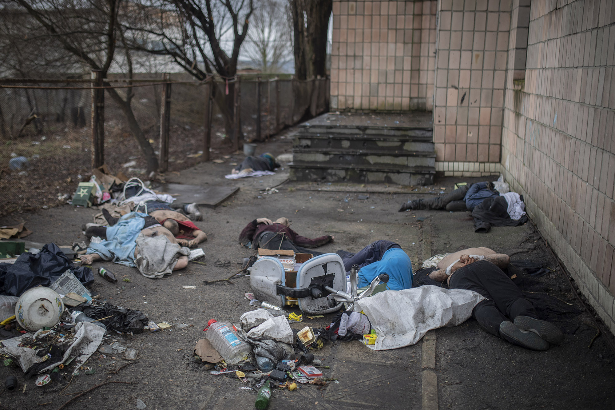 Al preguntar a los vecinos por qué los cuerpos han estado tanto tiempo ahí, sin taparse ni recogerse, la respuesta es que los soldados rusos no se lo permitían y los dejaban como aviso a la población de lo que les podría pasar.