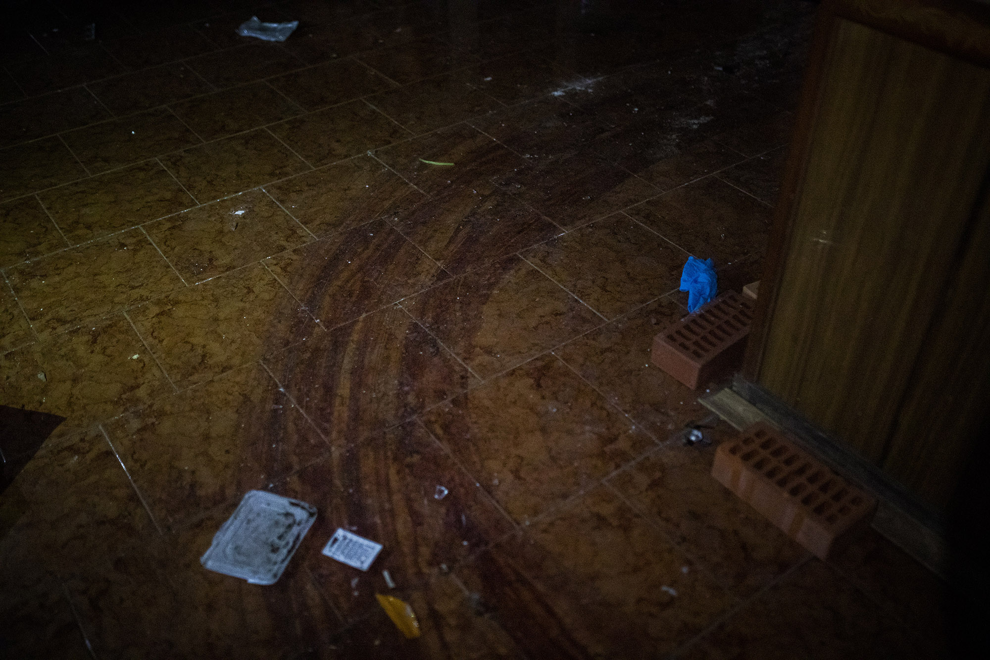 En uno de los laterales de la planta baja del mismo edificio se veían los restos de sangre de un cuerpo que fue arrastrado. Aquí hay señales de que se llevaron a cabo ejecuciones.