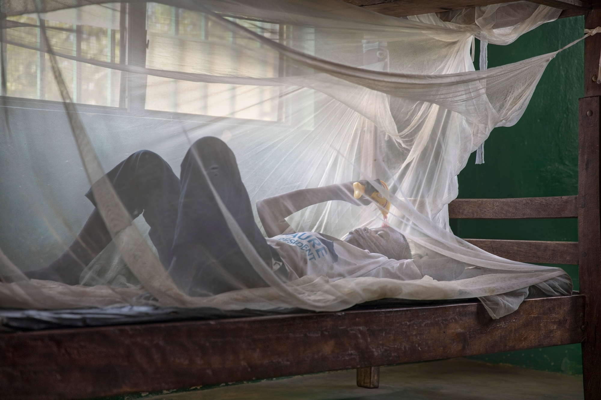 El chico de esta foto está descansando en la hora de la siesta antes de volver a la escuela. Juega casi sin interés con una pistola de juguete rota.