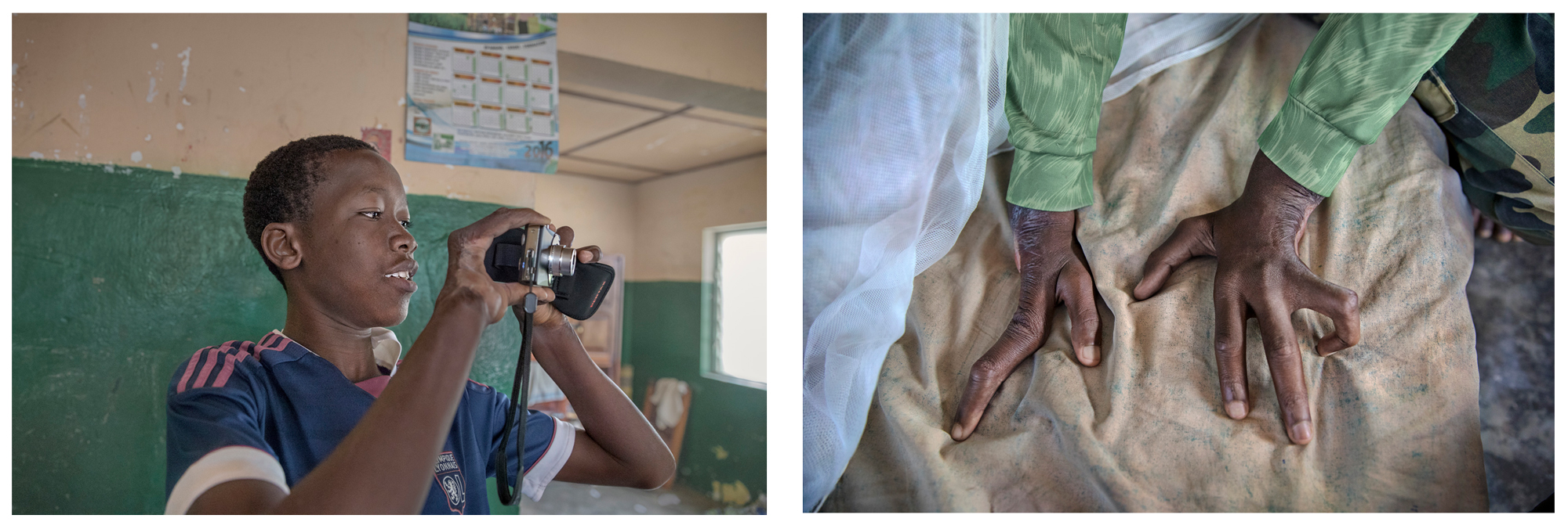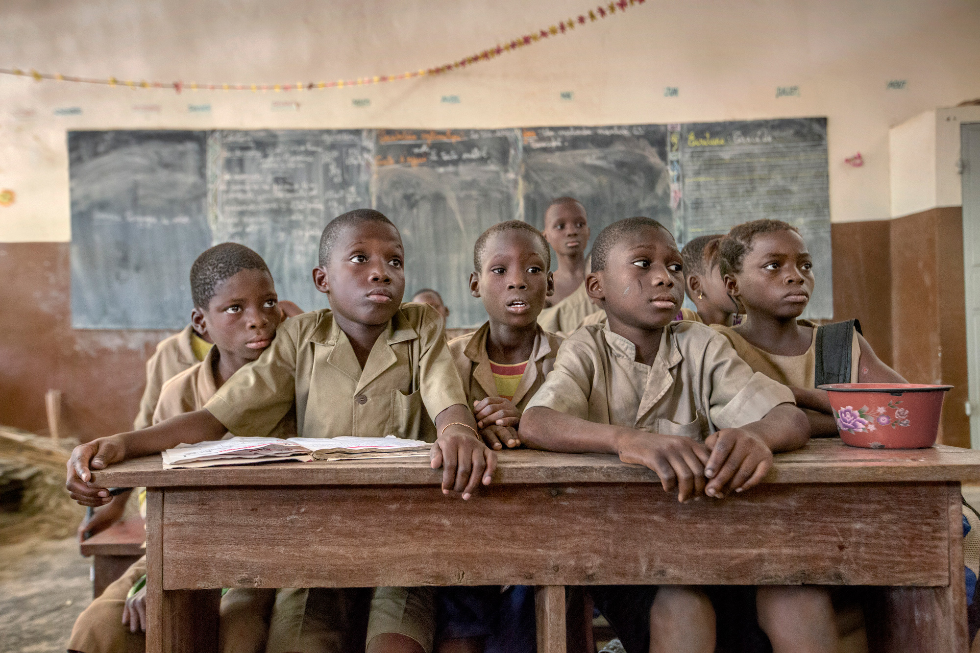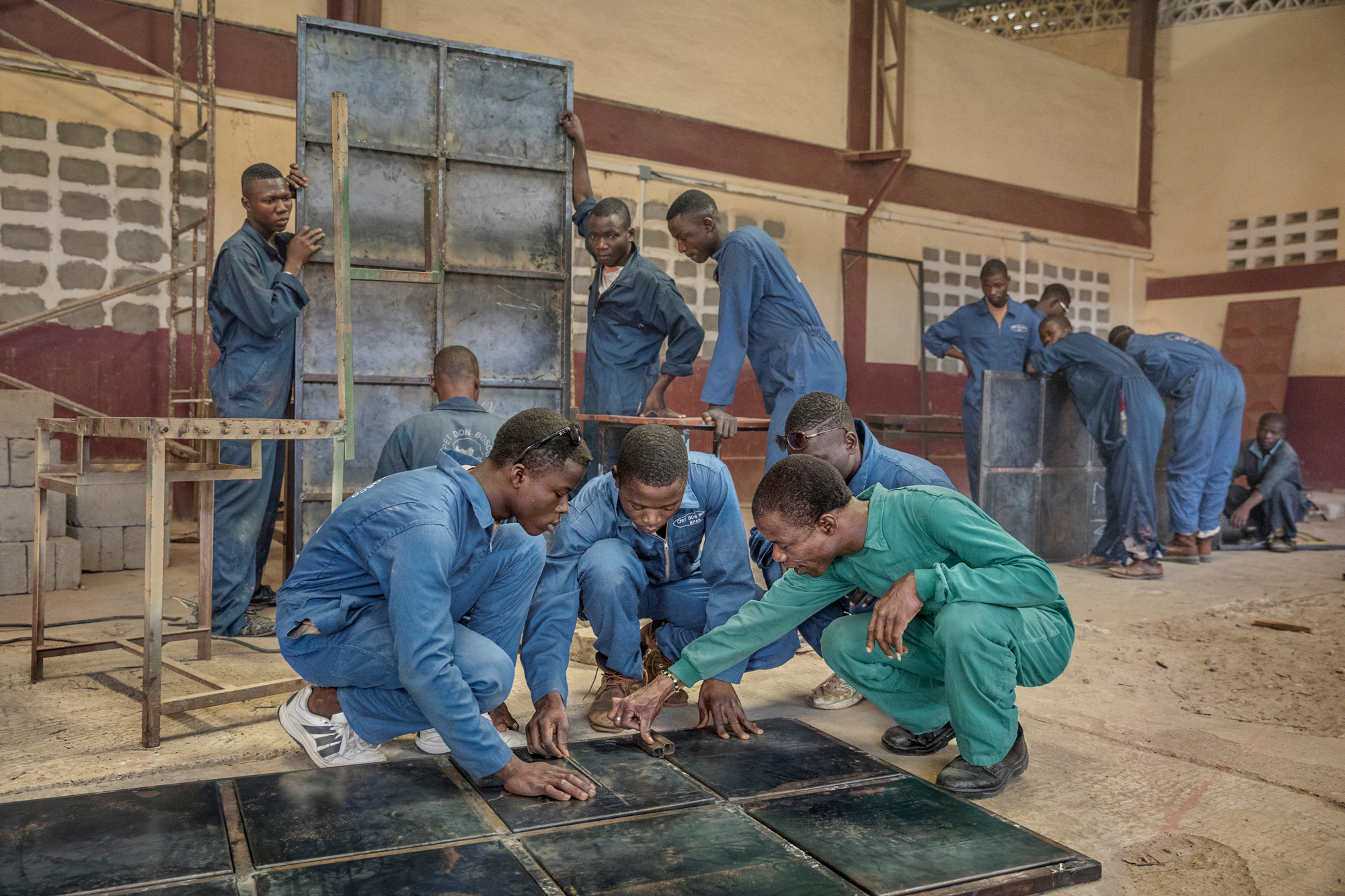 El chico que aparece en primer plano, a la izquierda, es Fréderic. Cuando era pequeño su padre mató a su madre mientras dormía. La familia, sin embargo, responsabilizó al niño acusándolo de brujería. Fue expulsado de su pueblo y, tras vagar por las calles de Kara, en Togo, acabó en un centro de acogida. Ahora estudia el segundo año de metalurgia en un centro de formación, lo que le permitirá entrar en el mercado laboral.
