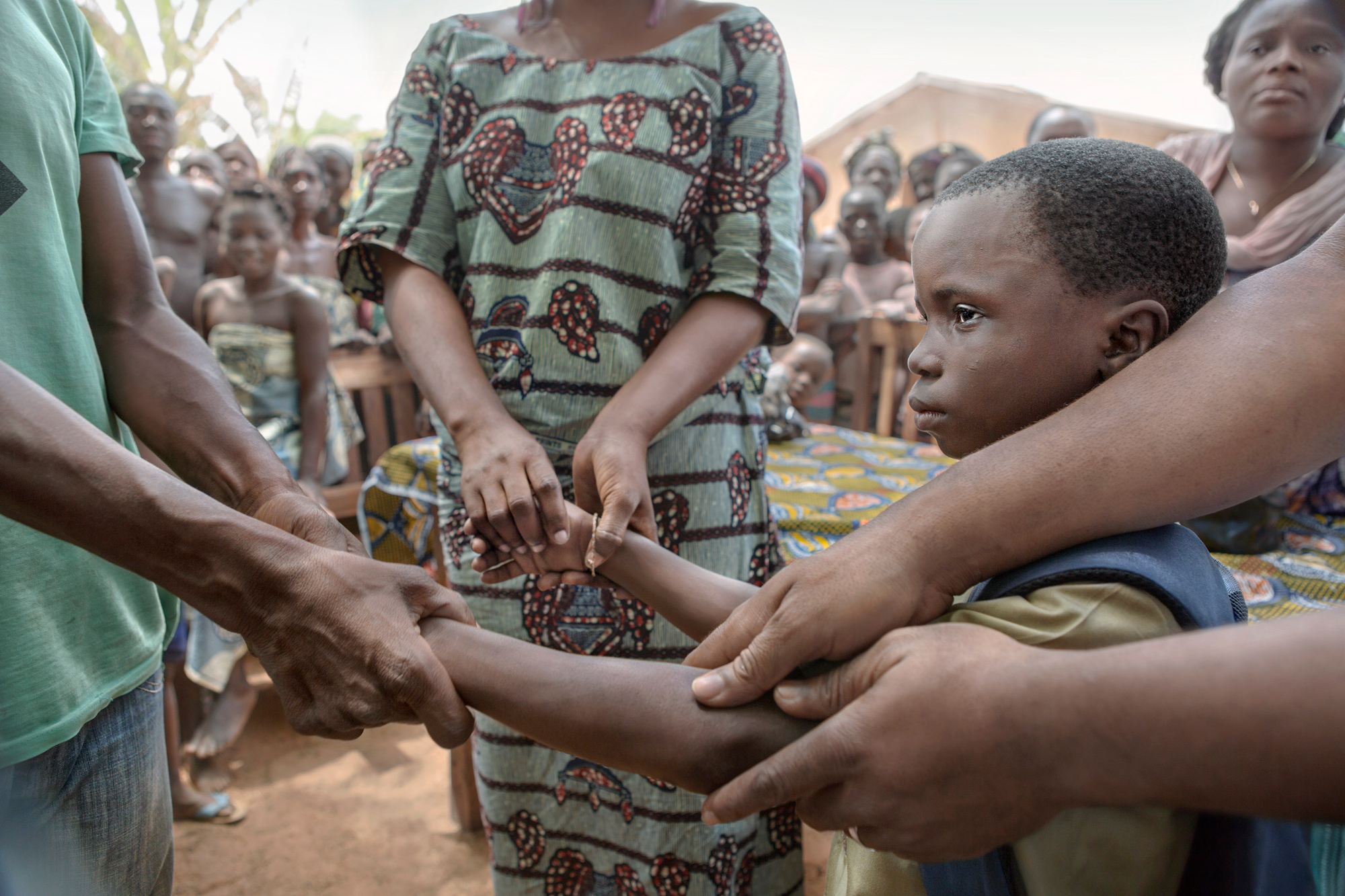 Esta imagen es la llegada de Grenat a Gbeko, en Benín. Tiempo atrás, su padre lo vendió a un hombre que lo llevó a Nigeria a trabajar en una tienda de ultramarinos. Se escapó por las continuas palizas que le propinaba.