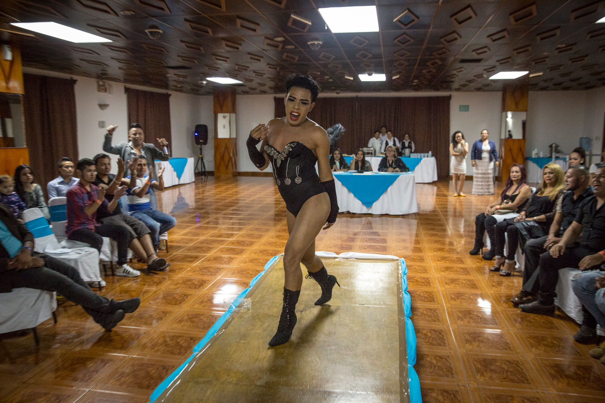 Darwin desfila en el concurso Miss Arcoiris, organizado por una entidad homónima que lucha por los derechos de la comunidad LGTBI en Honduras. Su hermano Marco —también llamada Shirley—, que fue asesinado, era un activista de Arcoiris.