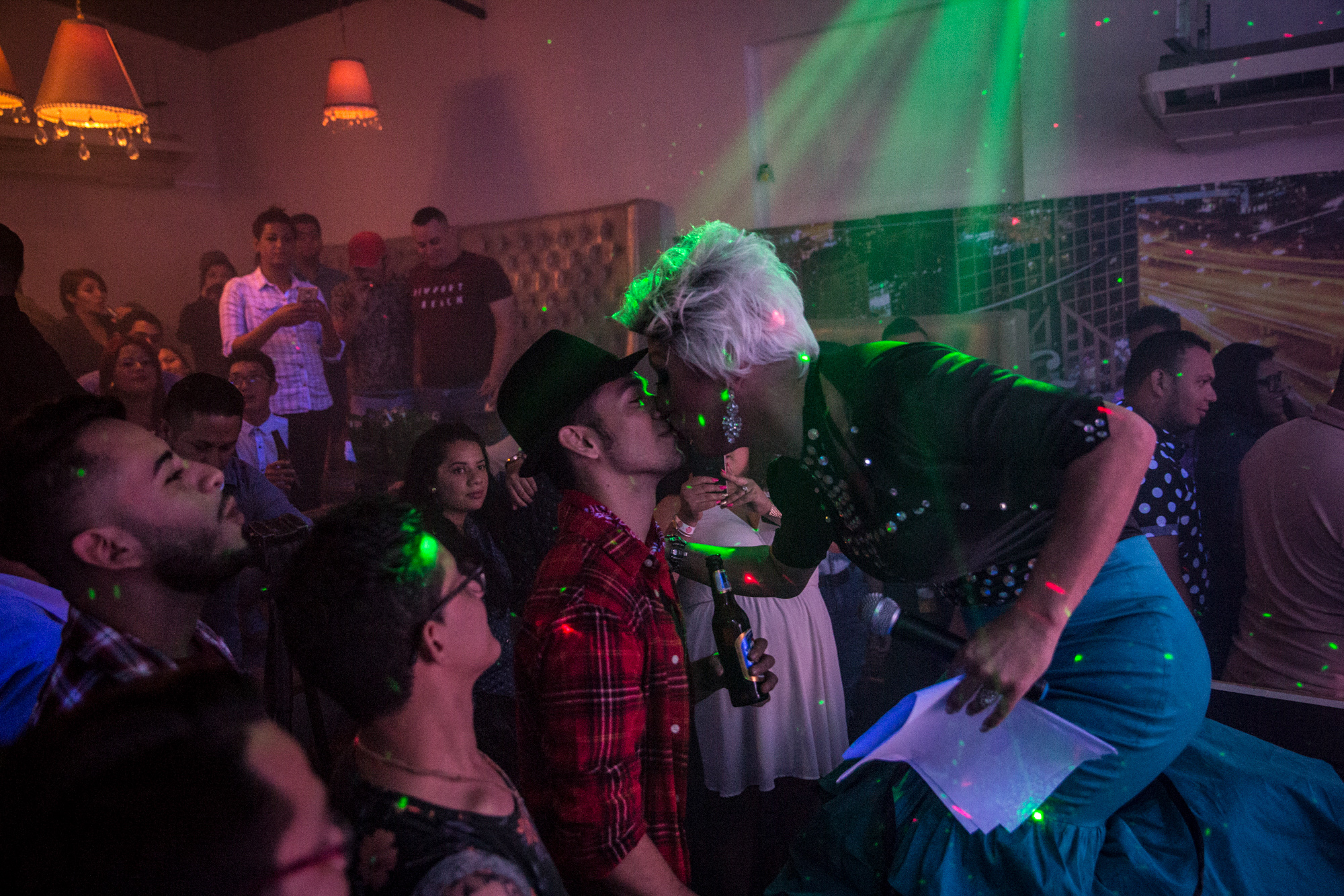 Sharpey hace su número durante el concurso de belleza trans en Tegucigalpa.