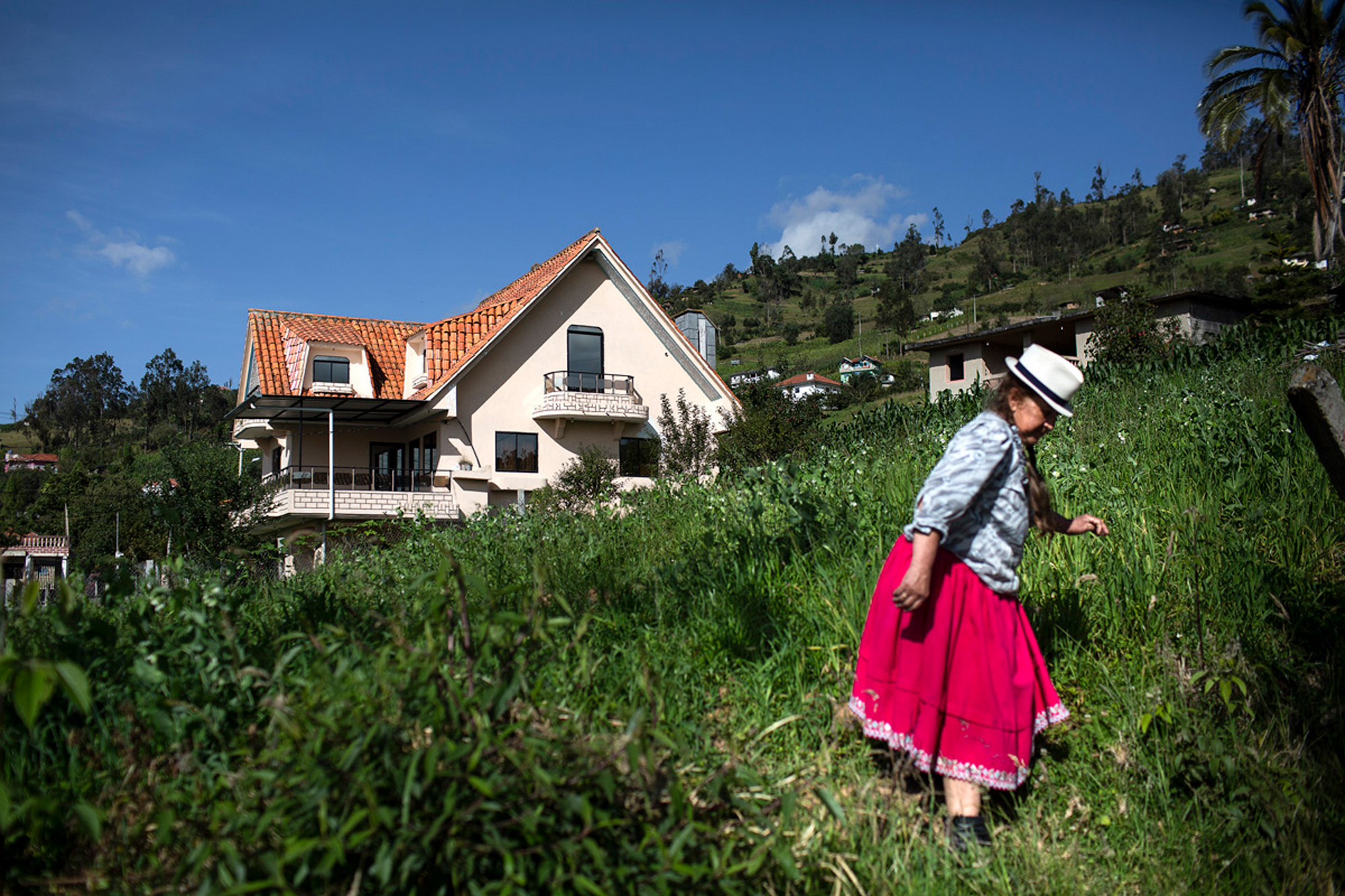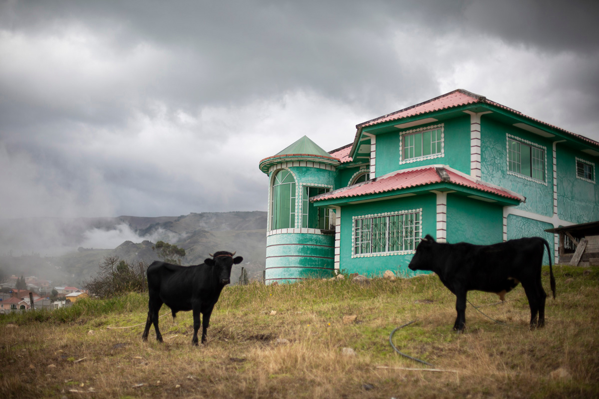 El espejo (o el espejismo) del sueño americano está siempre ahí: los nacidos en grandes ciudades como Cuenca y Azogues o en pequeñas comunidades como Gualaceo, Sigsig, El Tambo o Cañar han visto durante años cómo los arquitectos locales han calcado a la perfección las casas tipo estadounidense que los migrantes envían en fotos; o cómo se han levantado esos edificios de cinco y seis plantas con fachadas de cristal, muy a lo Manhattan, que pertenecen a familias enteras de migrantes que, muy orgullosas, han colocado sus apellidos en la parte más alta de las torres: Duchimaza, Yanza o Lluvicura. Todo este cemento se ha pagado con las remesas enviadas desde Estados Unidos, que nunca han bajado de 1.000 millones de dólares anuales desde 2007, según el Banco Central. Los migrantes suelen enviar entre 400 y 800 dólares mensuales a sus familiares. Esto supera el salario mínimo en Ecuador, que es de 394 dólares mensuales.