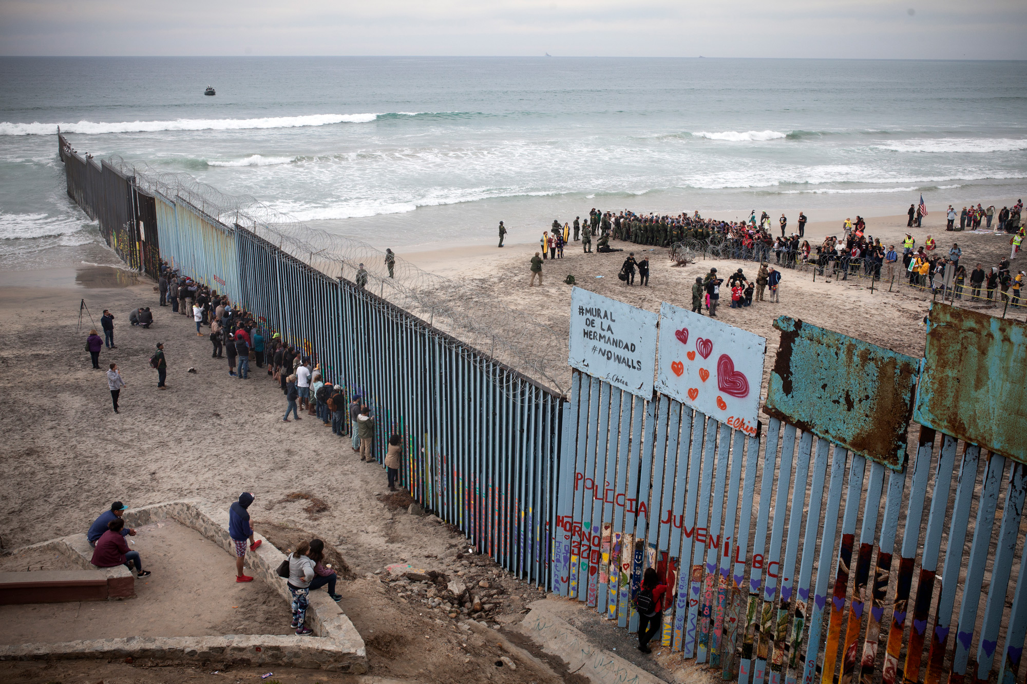 Este es el muro en Playas de Tijuana, en las afueras de Tijuana. El 10 de diciembre hubo una manifestación de congregaciones religiosas en San Diego, al otro lado de la frontera, en Estados Unidos, que pedía un trato digno para los refugiados y que fueran acogidos. Había unas doscientas personas. La guardia fronteriza de Estados Unidos les impidió llegar al muro y detuvo a unas veinte personas. En el lado mexicano, un grupo de curiosos, periodistas y activistas observaban la escena.