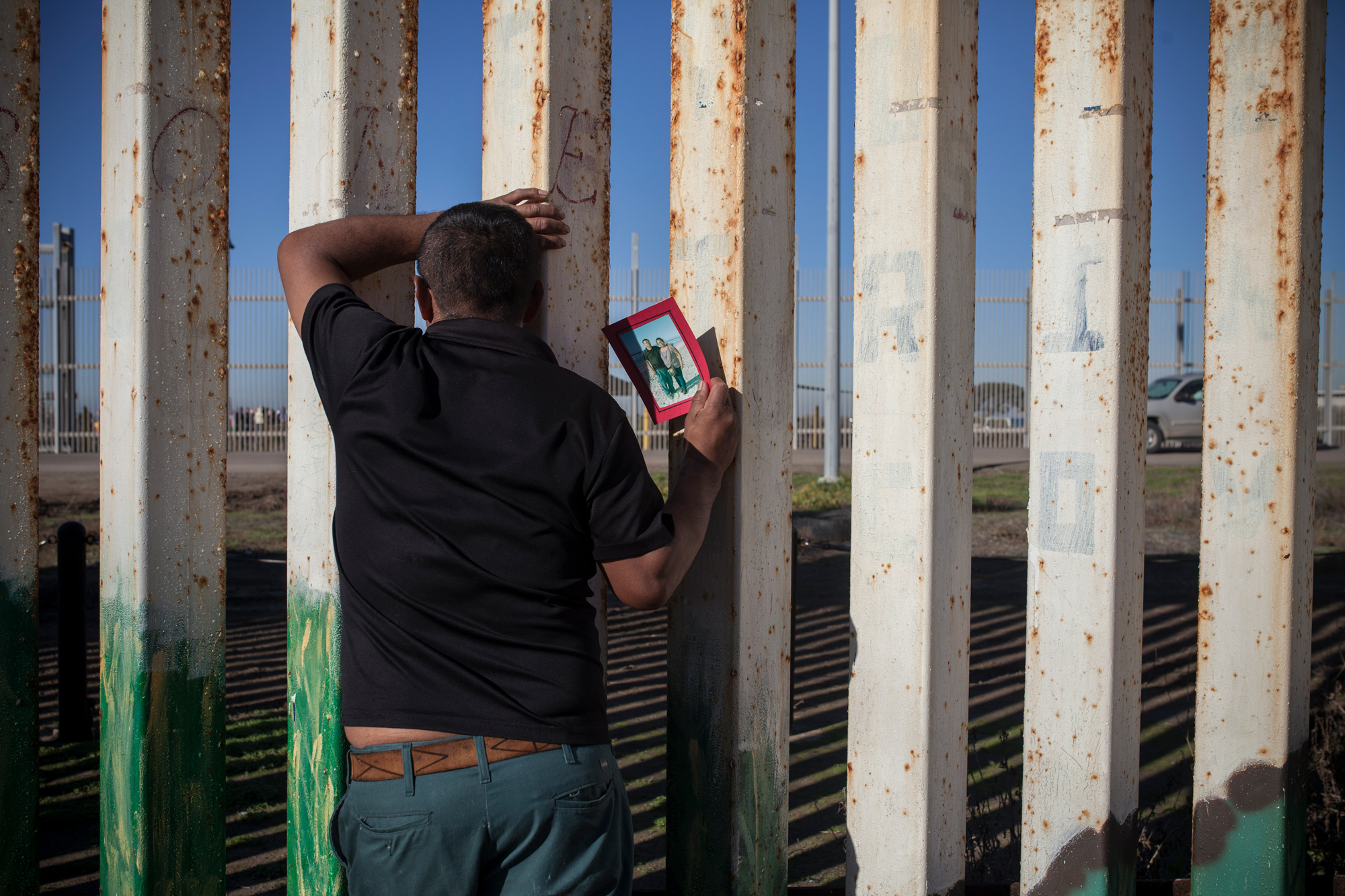 15 de diciembre. Varios grupos de activistas organizaron en el muro una posada, que es una celebración navideña muy común en México. Una posada binacional: personas en Estados Unidos y en México separadas por el muro. Son familias que viven a ambos lados de la frontera. Este hombre tiene a su mujer en Estados Unidos y está esperando que aparezca para verla, aunque sea a lo lejos y con hormigón y alambre de espino de por medio.