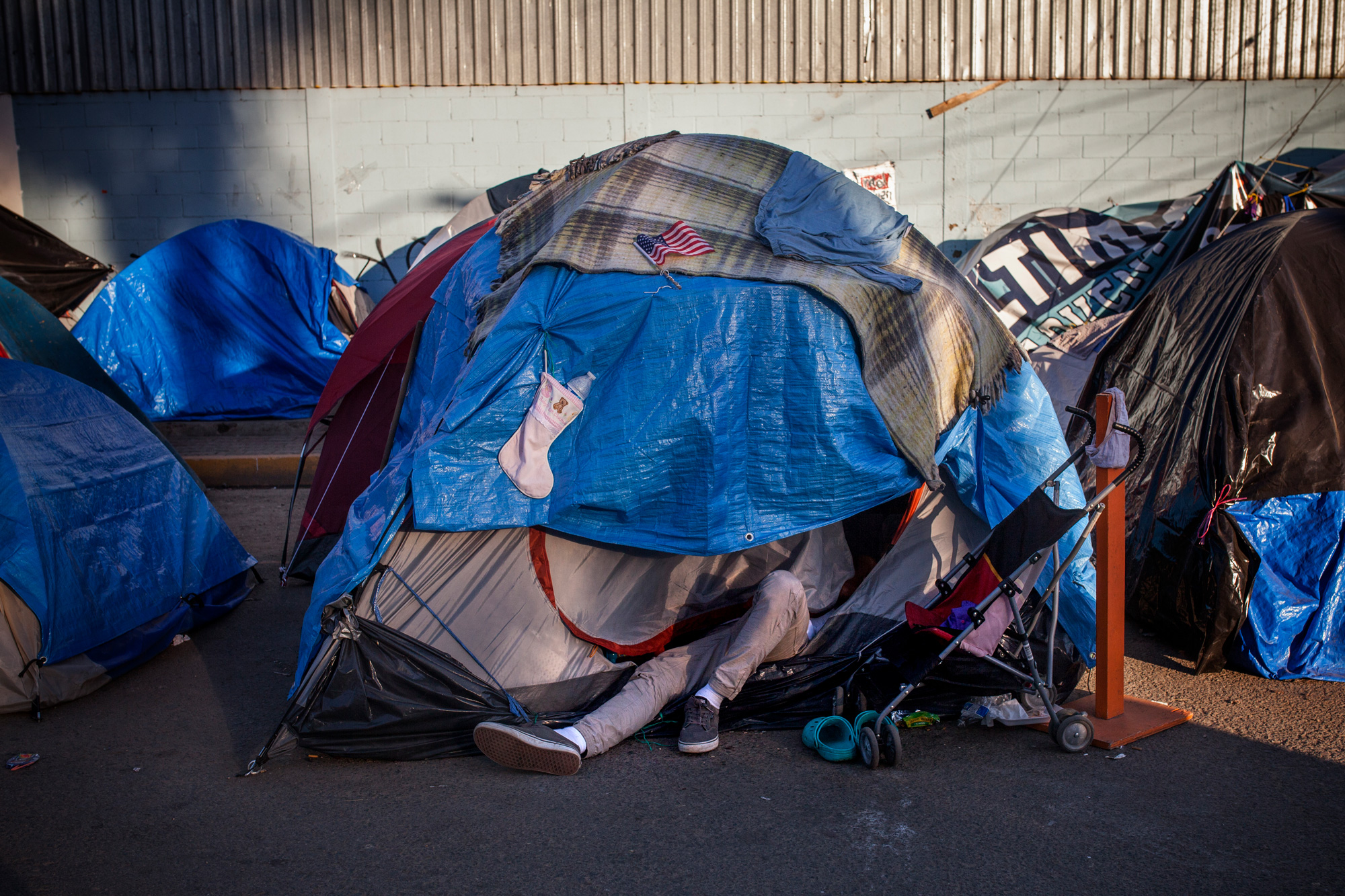 Una tienda de campaña en medio de la calle. Cuando la Unidad Deportiva Benito Juárez, en la que originalmente se instalaron las miles de personas que formaban parte de la caravana, quedó inhabilitada, hubo gente que no se quiso ir. Hubo un grupo que se negó a ir al albergue de El Barretal porque tenía la sensación de que los estaban alejando del muro. Decidieron quedarse en las calles aledañas al albergue original, en un barrio que se llama Zona Norte de Tijuana, a pocos metros del muro fronterizo. En parte, tenían razón.