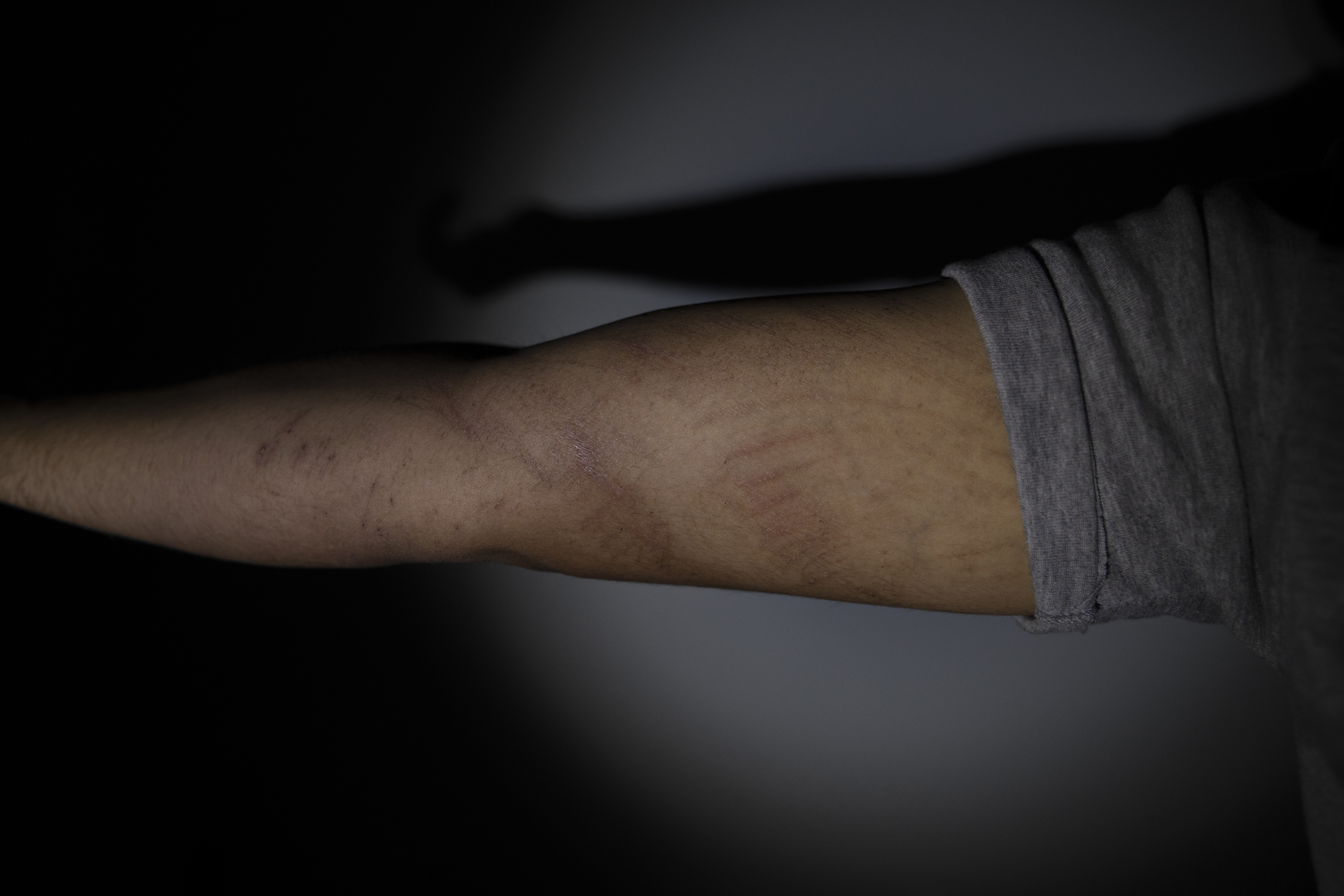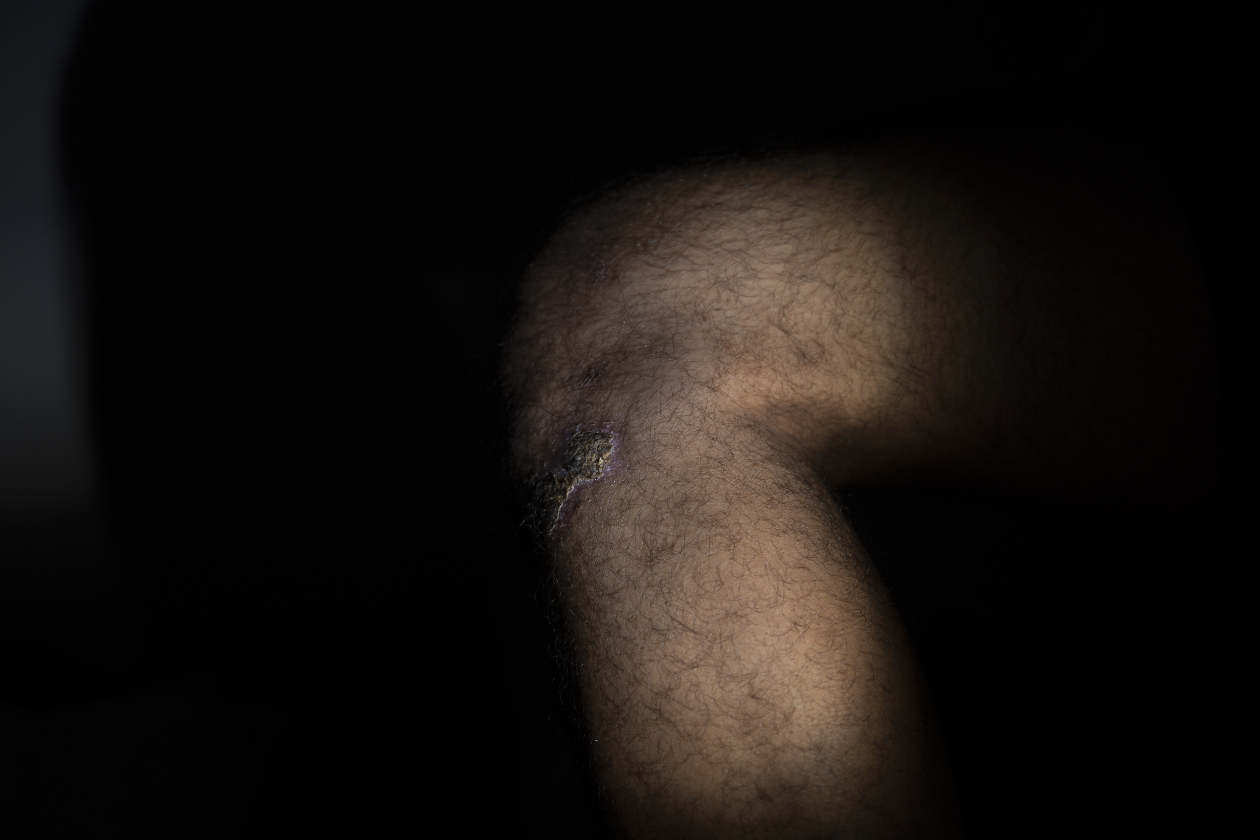 “Había un hombre en cubierta”, relata Khaled. “Empezó a pegarnos y nos llevó a la bodega. Mi primo y yo decidimos salir de ahí e ir juntos arriba sin que nadie nos viera y sin pagar nada. Salimos, subimos y vino un traficante. Nos empezó a pegar y nos amenazó con un cuchillo. Vimos que estaba recogiendo dinero de la gente. Mi primo habló con él y le dio 100 dólares para permitirnos estar ahí a los tres [ellos dos y un tercer primo]”.