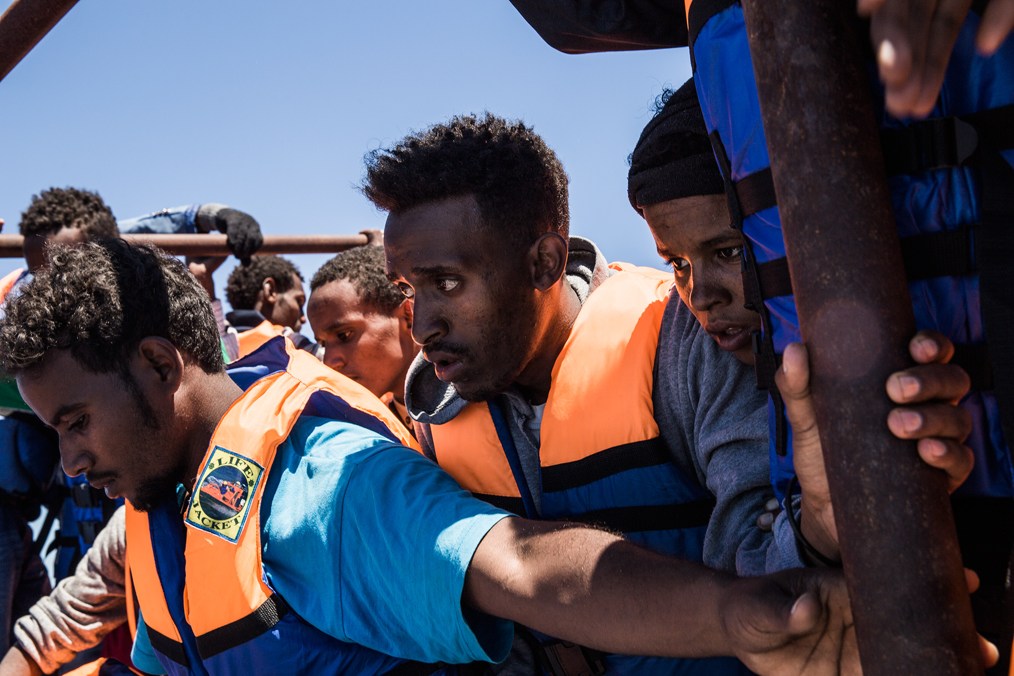 Refugiados eritreos y somalíes durante un rescate en el mar Mediterráneo. Anna Surinyach