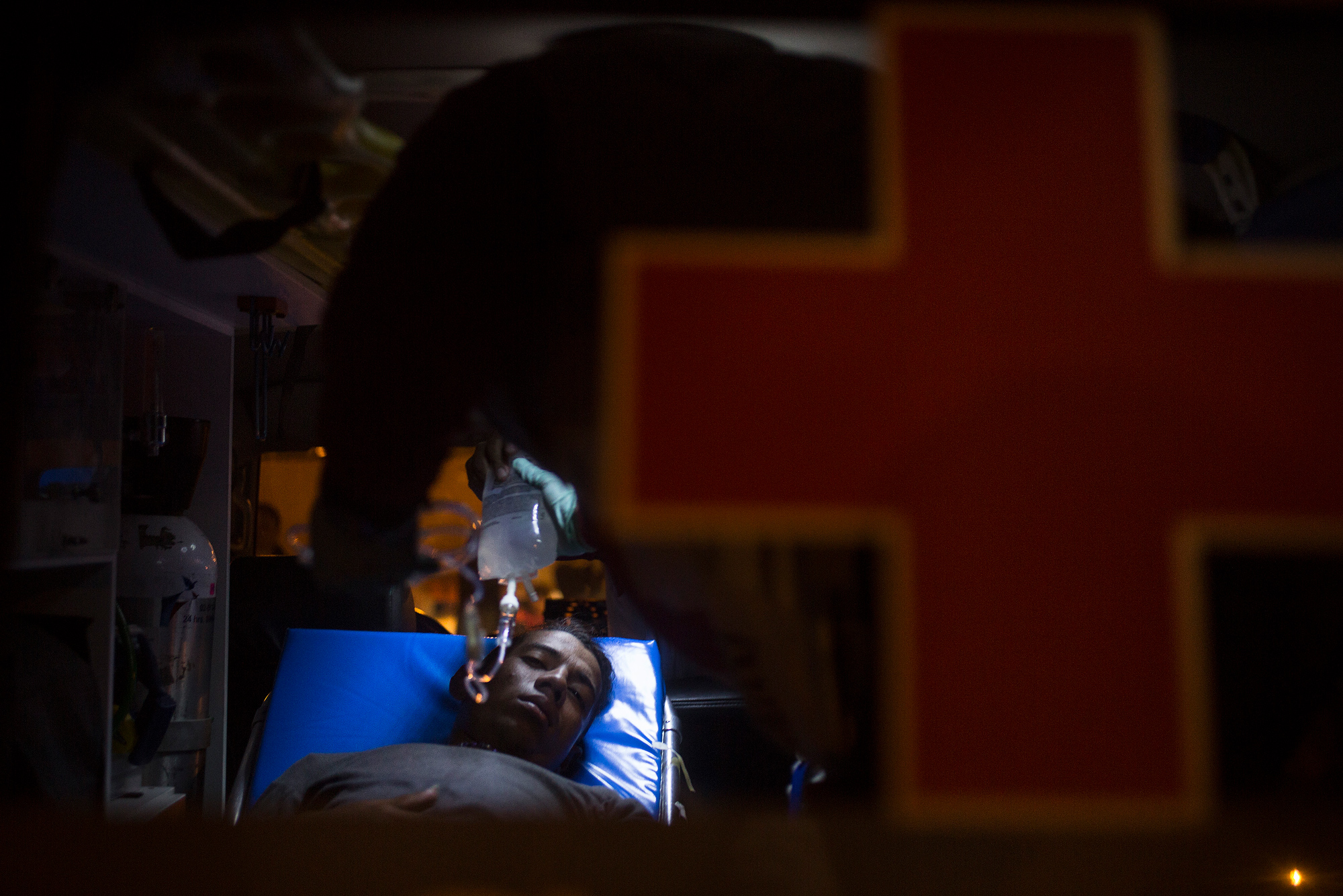 Jhenfies Martínez tiene 19 años, sufre un tipo de diabetes pero es intolerante a la insulina. Necesitaba un medicamento especial que le enviaban desde España y que no tenía cuando salió de Venezuela. En el momento de esta foto ya llevaba más de veinte días caminando con su familia y había sufrido varias crisis y recaídas. Al llegar a Quito, en la imagen, sufrió otro colapso.
