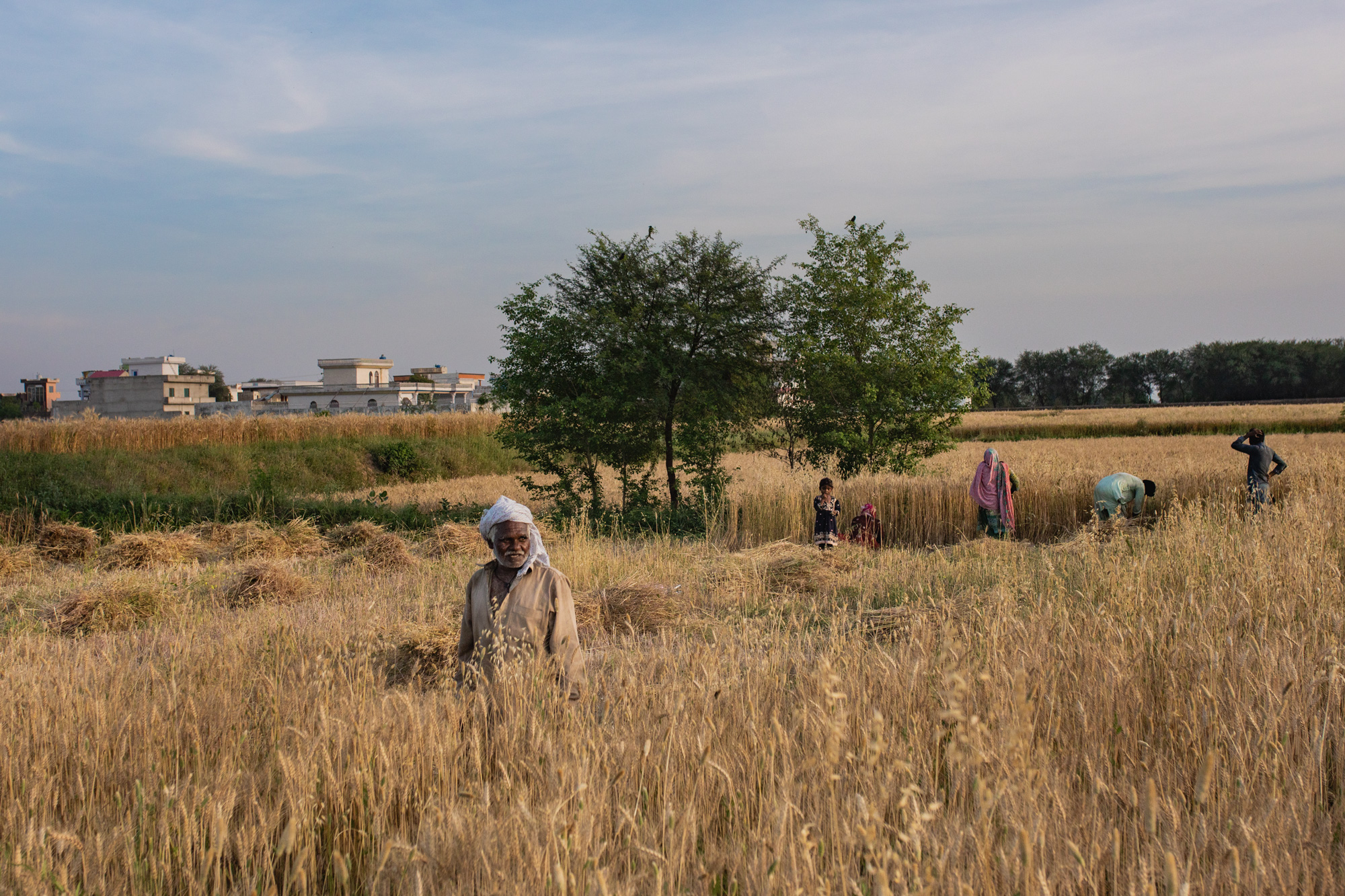 Pero no me he adentrado en el trigo que rodea todas las ciudades de este distrito. Así que lo hago. Me meto en un campo de espigas. No tengo que caminar demasiado para encontrarme con un agricultor de piel negrísima, castigada por el sol. Es un hombre mayor. Dice que se llama Afzal. Me cuesta comunicarme con él, su punyabi es difícil de entender. Lo saludo pero no lo entiendo. El periodista pakistaní que me acompaña, Sabookh Syed, me hace de traductor.