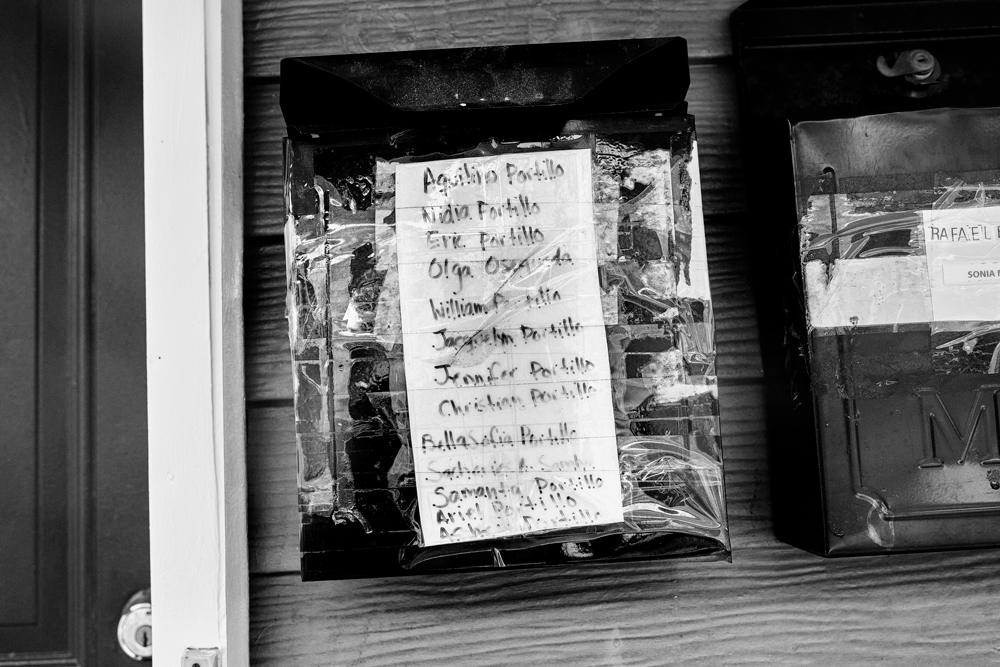El buzón de la familia Portillo parece la alineación de un equipo de fútbol. Trece nombres decoran la negra caja de correspondencia.