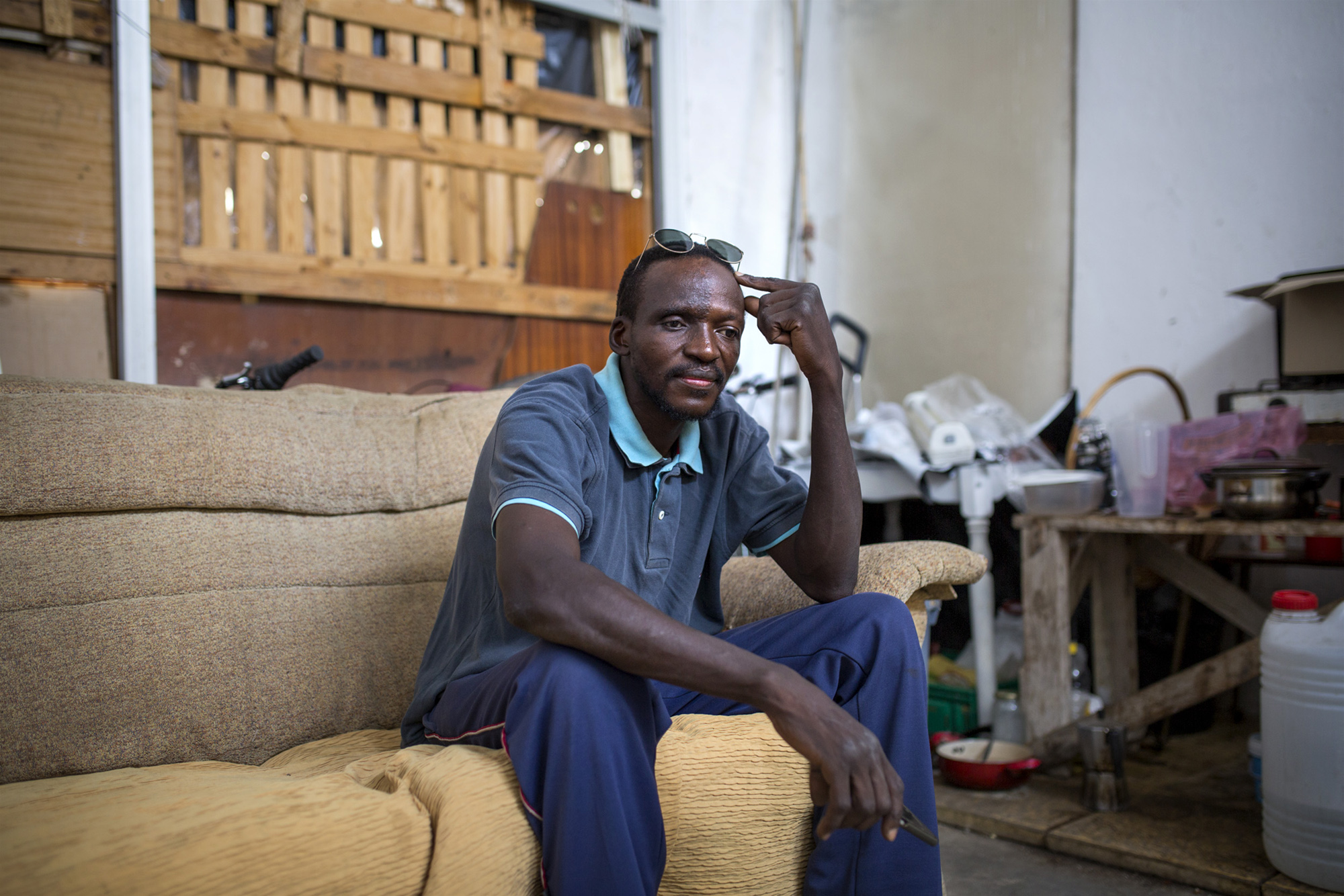 —Este —dice Beleti señalando a un joven detrás de él, sentado en la veranda del bar-chabola— no va a trabajar de momento. Le ayudamos con la comida y con un techo hasta que encuentre trabajo.