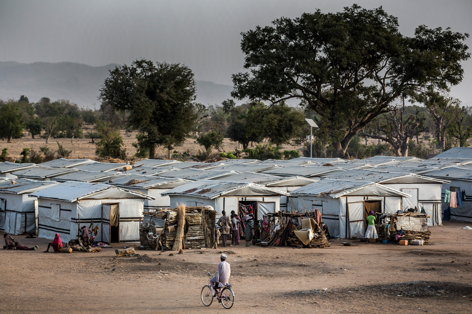 En el campo de Malkohi, en Jimeta Yola, viven cerca de 2.800 desplazados internos que huyeron de la amenaza de Boko Haram, principalmente llegados de Maiduguri y Gwoza. Este es uno de los muchos campos para desplazados internos de Nigeria. En la imagen, algunas de las tiendas de Malkohi en las que viven estos refugiados internos.