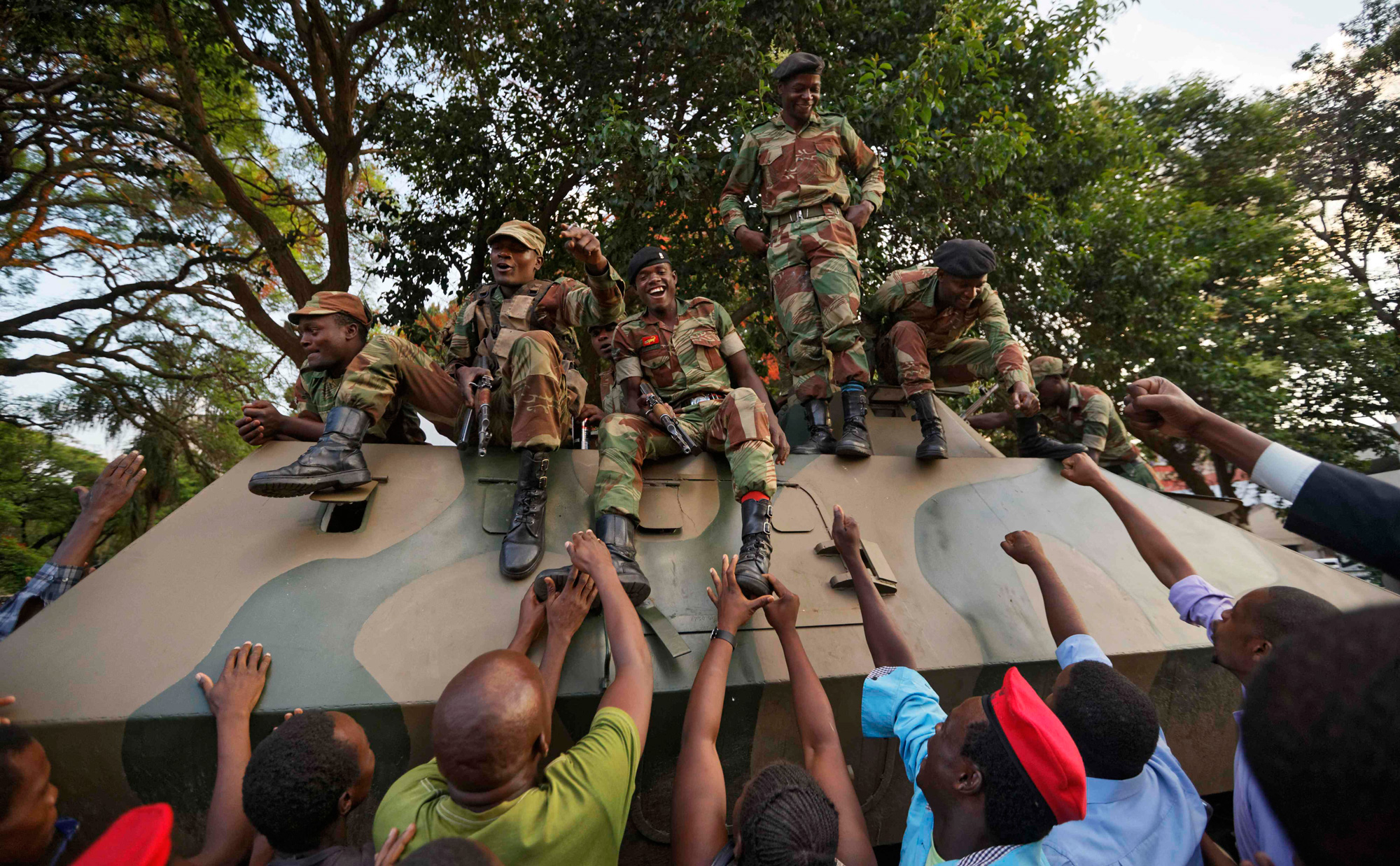 Y entonces ocurrió. Minutos después de que Mugabe anunciara su dimisión, el júbilo estalló por todas partes. La gente se comportaba como si fuera su último día en la tierra. Gritaban que eran libres, independientes, proclamaban al viento los derechos humanos y hablaban del futuro. Los automóviles se convirtieron en podios donde encaramarse para bailar y expresar la alegría. Los tanques del Ejército, que no hace tanto provocaban terror, se convirtieron en monumentos, y los militares en estrellas de Hollywood que posaban para las fotos y los vídeos una y otra vez. Los blindados se transformaron en atracciones y los padres subían sobre ellos a sus hijos para fotografiarles en ese momento histórico.