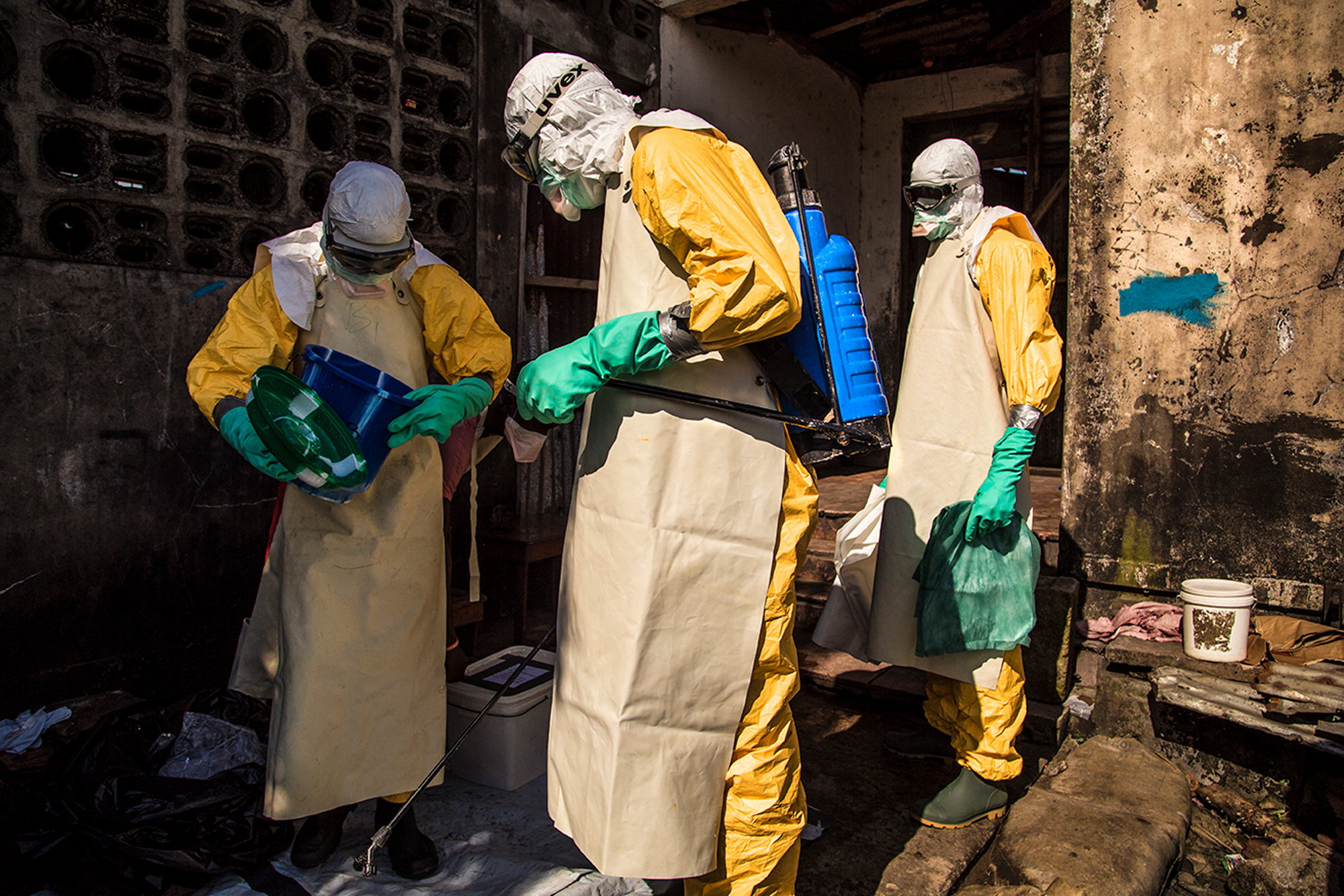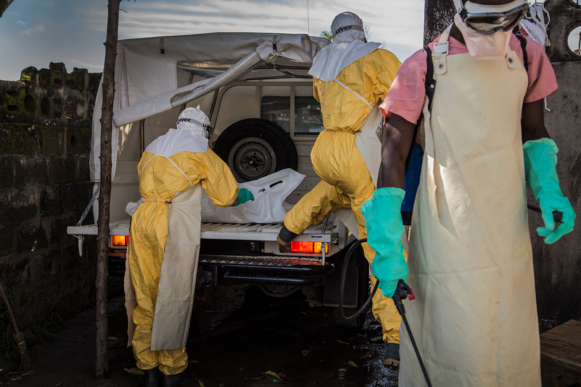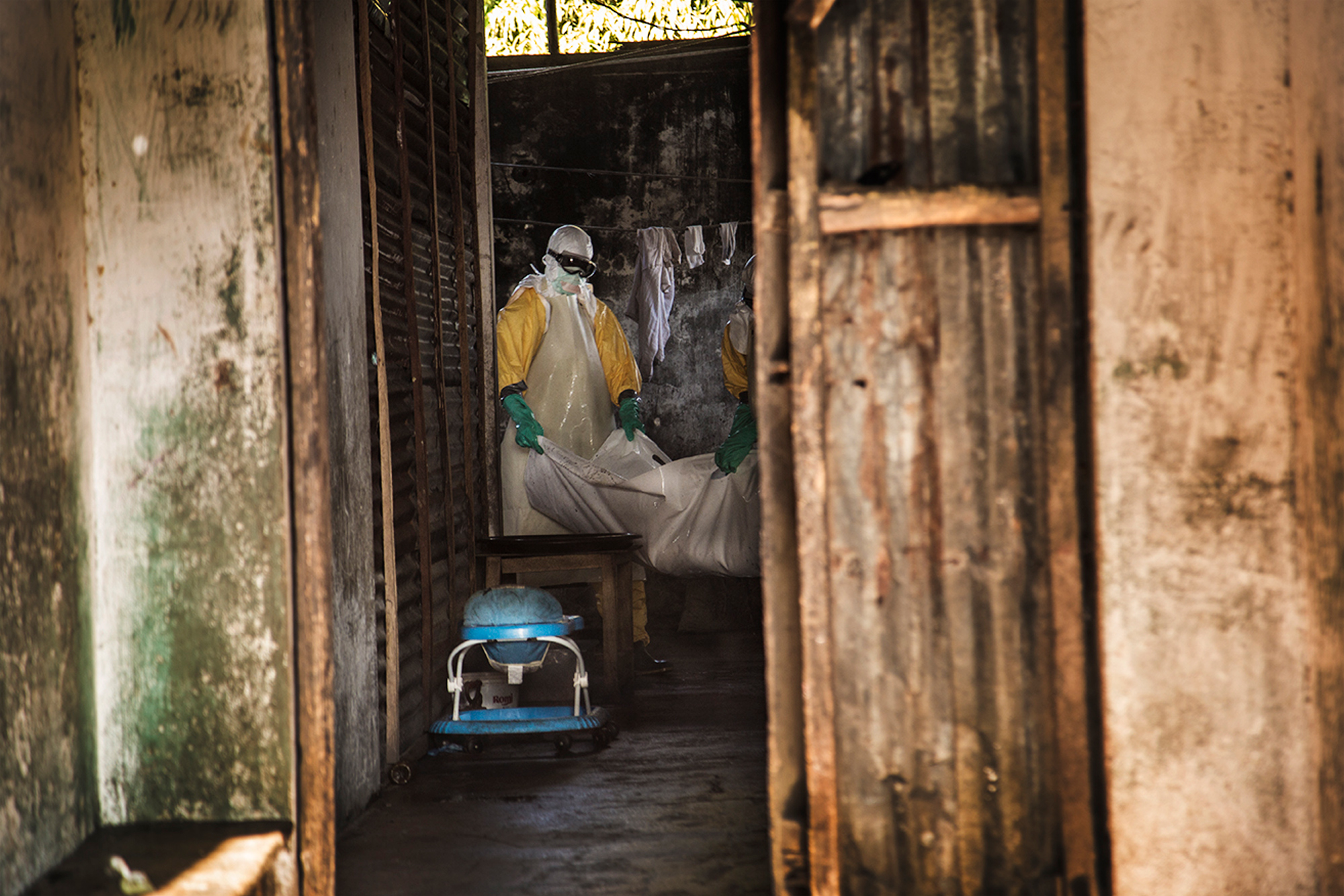 Recuerdo un día que me uní al equipo que recogía cadáveres en Monrovia. Iban a casas donde una persona había fallecido de ébola. La muerte es el momento de mayor carga vírica del ébola, y por eso aquella era una de las operaciones más peligrosas. Lo ideal era que los infectados fueran ingresados en hospitales, pero había gente que se negaba, y eso hacía que el equipo tuviera que acudir allí. “Con el tiempo me he hecho fuerte”, me decía B. Sunday Williams, el chico que se encargaba de rociar con cloro a todo el equipo para protegerlo. Llegamos a una casa y, tras enfundarse el traje de protección, entraron y sacaron un cadáver de una habitación donde había un andador de bebé. La mujer que estaba en casa no salió. Había silencio. Solo se oía su llanto, que rebotaba en las paredes del edificio.