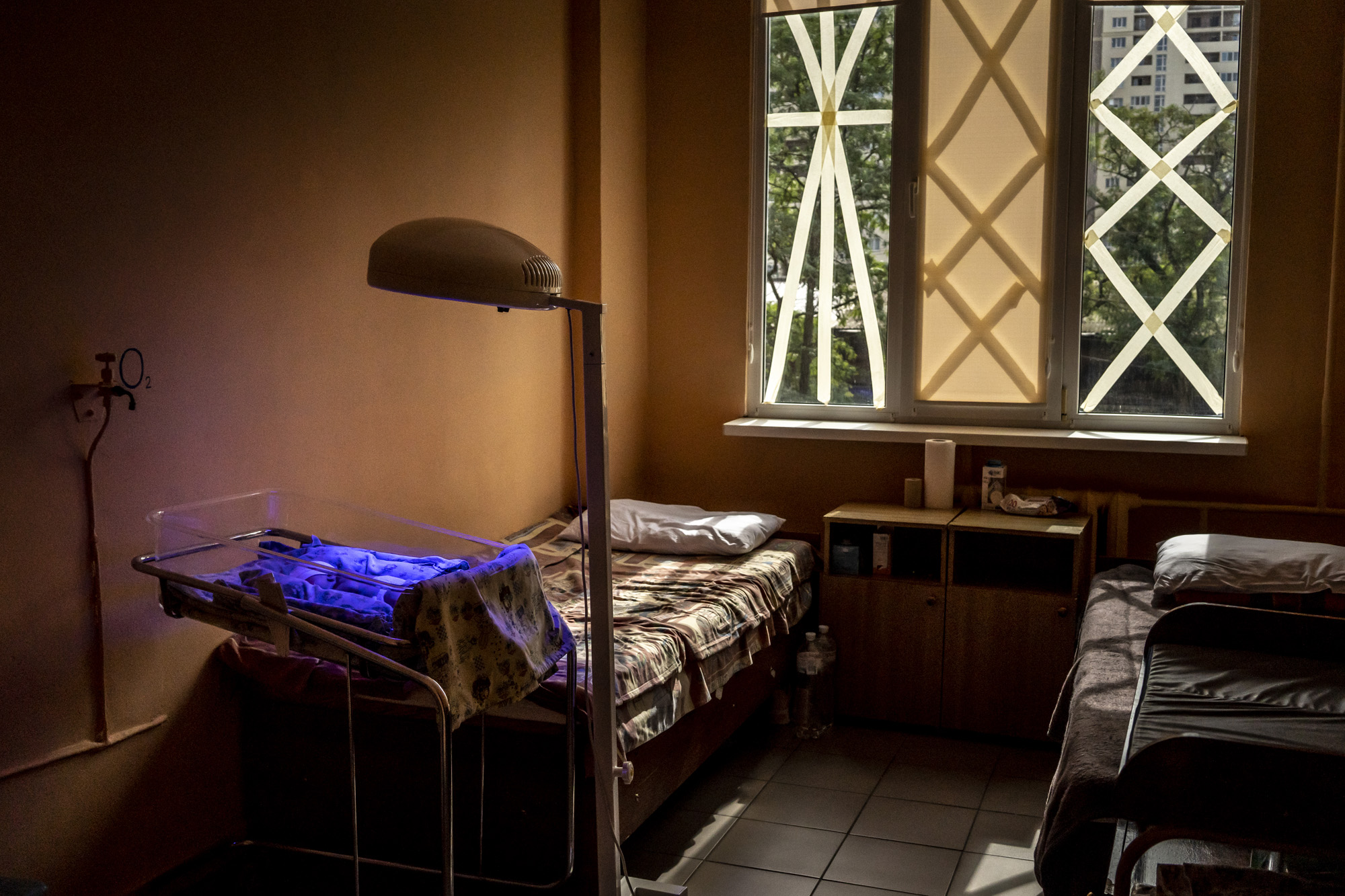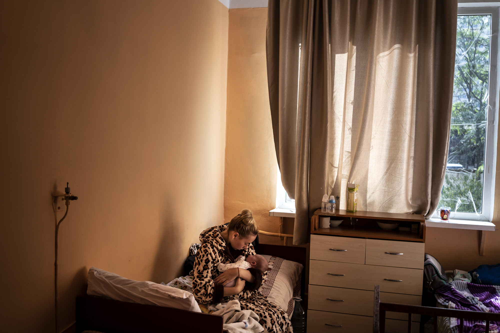 En una habitación de este hospital con cuatro camas está Diana Rusina, de 19 años, con su bebé. Aún no hace frío en Odesa, pero la estufa funciona a pleno rendimiento. Diana dio a luz hace unos días, así que cuando empezó la guerra ya estaba embarazada. Vivía en una pequeña localidad de la provincia de Jersón: sufrió la ocupación rusa pero logró escapar.