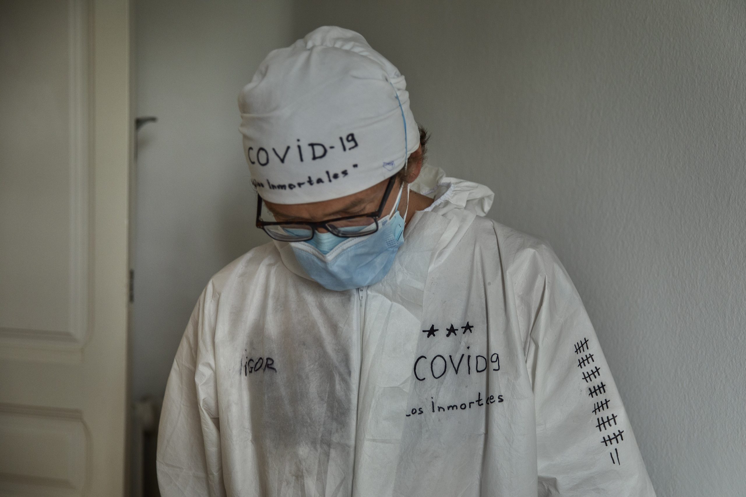 Jesús es el responsable de mantenimiento de una residencia de Barcelona cercana al Parque Güell. Cuando lo conocimos, a mediados de abril, iba enfundado en un buzo blanco de protección y coordinaba el traslado de varias ancianas —todas con covid-19— a un espacio habilitado en Barcelona. Dos de aquellas mujeres fallecieron los días siguientes, igual que una tercera que estaba ya ingresada en la UCI. El resto está ya “de vuelta a casa”, en el centro, dice. La directora, la enfermera y el fisioterapeuta también han regresado. Él ha cambiado el buzo por su uniforme habitual, complementado ahora con mascarilla y guantes, y ha retomado sus rutinas de mantenimiento de la residencia. Están “más tranquilos”, cuenta, y siguen los protocolos de seguridad que marca la Generalitat.